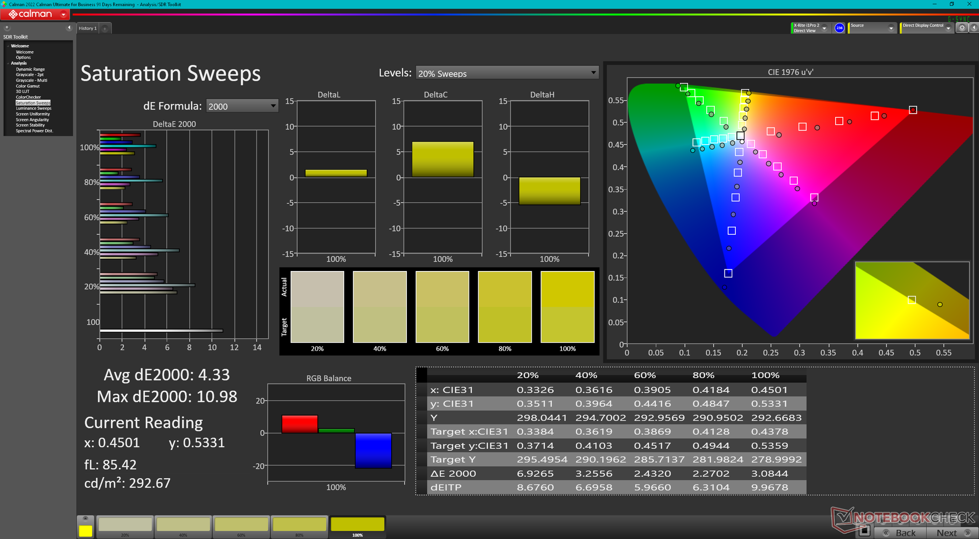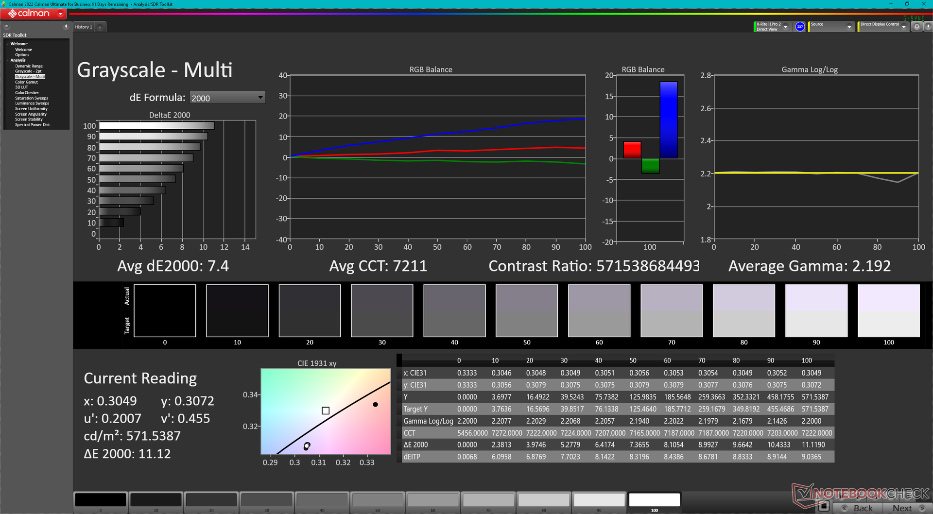 ΔE Greyscale Calman: 7.4 | ∀{0.09-98 Ø5}