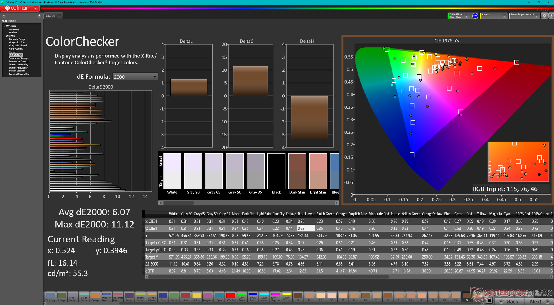 | Colorchecker dE 2000 max. * | 11.12 | 3.8 66% | 2.6 77% | 3.3 70% | 3.67 67% |