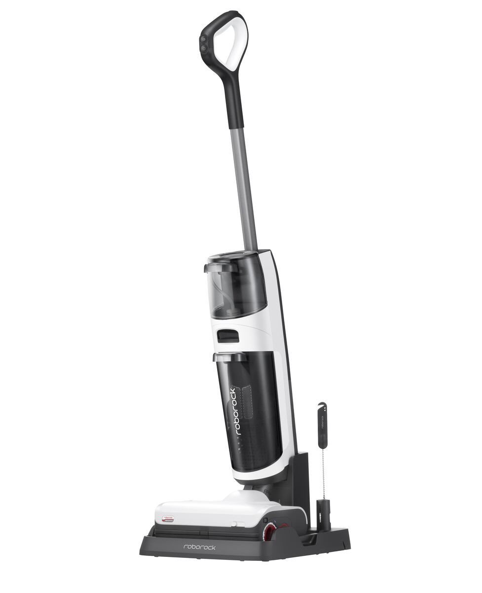 Mit dem integrierten Akku verspricht der Hersteller bis zu 40 Minuten Reinigungszeit mit einer Ladung. So sind rund 300 Quadratmeter möglich. Der Frischwassertank fasst 900 ml, der Schmutzwassertank 760 ml. Nach der Reinigung muss der Dyad Pro nicht händisch sauber gemacht werden, sondern reinigt seine Walzen automatisch, wenn er angedockt wird. Dazu folgt eine automatische Selbsttrockung, um Gerüchte und Bakterienbildung zu verhindern.