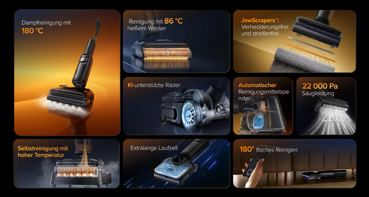 Auch mit dem Rabatt ist der F25 Ultra kein Schnäppchen. Dafür bietet der bisher beste Nass-Trockensauger von Roborock aber auch eine beachtliche Ausstattung. Das Gerät kann Böden nicht nur erstmals mit 86°C heißem Wasser, sondern zusätzlich auch mit 180°C heißem Dampf reinigen. Dies verspricht ein besonders hygienisches und sauberes Ergebnis, auch dank automatischer Reinigungsmitteldosierung und 22.000 Pa Saugleistung.