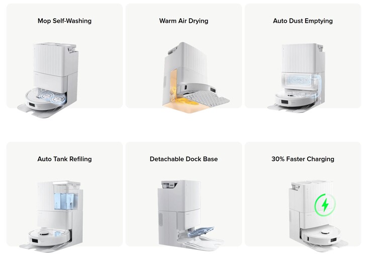 Auch auf eine Reinigungsstation müssen Käufer nicht verzichten. Das multifunktionale Dock saugt nicht nur den Staubbehälter ab, sondern wäscht auch die Wischeinheit, verzichtet hier allerdings auf das neuerdings häufig genutzte heiße Wasser. Anschließend erfolgt eine Heißlufttrocknung. Verzichten müssen Käufer im Vergleich zu den teureren Pro- und MaxV-Modellen auf den ausfahrbaren Wischmopp.