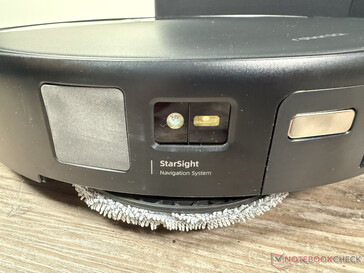 Zudem hinterlassen rotierende Wischmopps manchmal unter bestimmten Lichteinfällen sichtbar werdende kreisförmige Spuren auf dem Boden. Vorteilhaft ist, dass mit dem ausfahrbaren Wischmopp noch randloser gewischt wird. Er löst nicht nur mehr Dreck als das Mini-Pendant im Saros 10, sondern kann beispielsweise bei leicht überhängenden Kanten wie Möbeltüren sogar noch etwas unter Vorsprünge fahren.