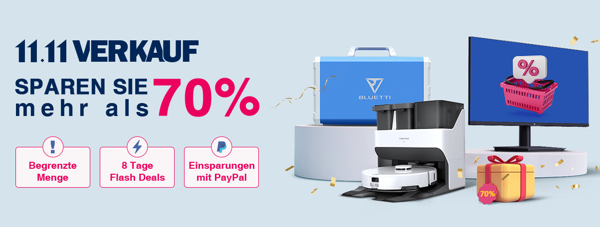 Bis zu 70 Prozent lassen sich laut Angaben des Shops sparen. Dazu locken bis zum 13. November regelmäßig wechselnde Flash-Deals sowie 5 Euro Extrarabatt, wenn eine Bestellung über 400 Euro mit PayPal bezahlt wird.