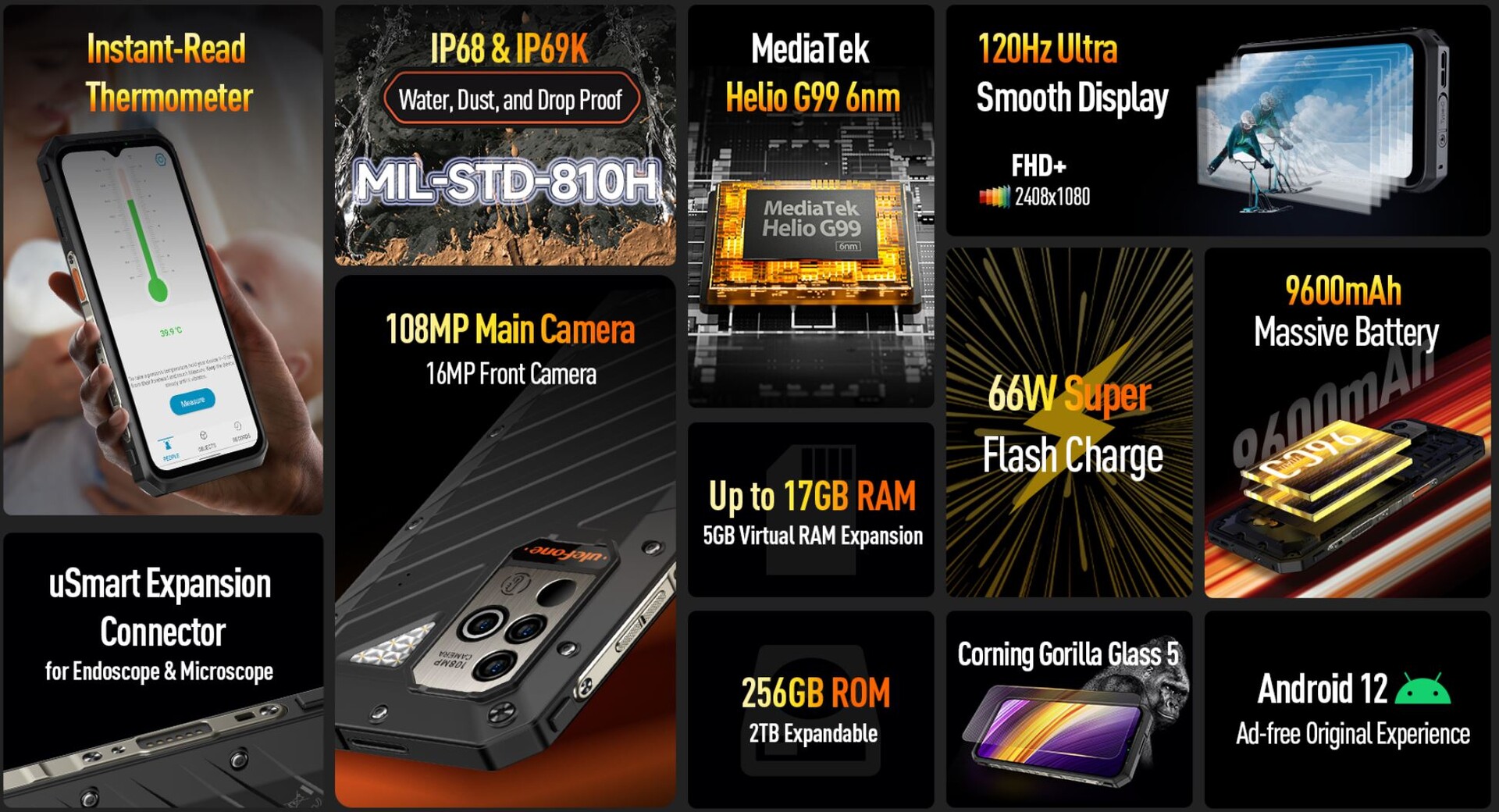 Das neue Power Armor 18 von Ulefone gleicht in vielen Punkten dem bereits bekannte Power Armor 18T, verzichtet aber auf die Wärmebildkamera. Stattdessen bietet es einen Temperatursensor. Dazu gibt es einen Erweiterungsport an der Unterseite. Das Herzstück des gemäß IP68, IP69K und MIL-STD-810H besonders robusten Outdoor-Smartphones ist der MediaTek Dimensity 900 5G. Kombiniert wird der 5G-Chipsatz mit 12 GB physischem sowie 5 GB virtuellem RAM sowie 256 GB ROM, der sich um 2 TB via Speicherkarte erweitern lässt.