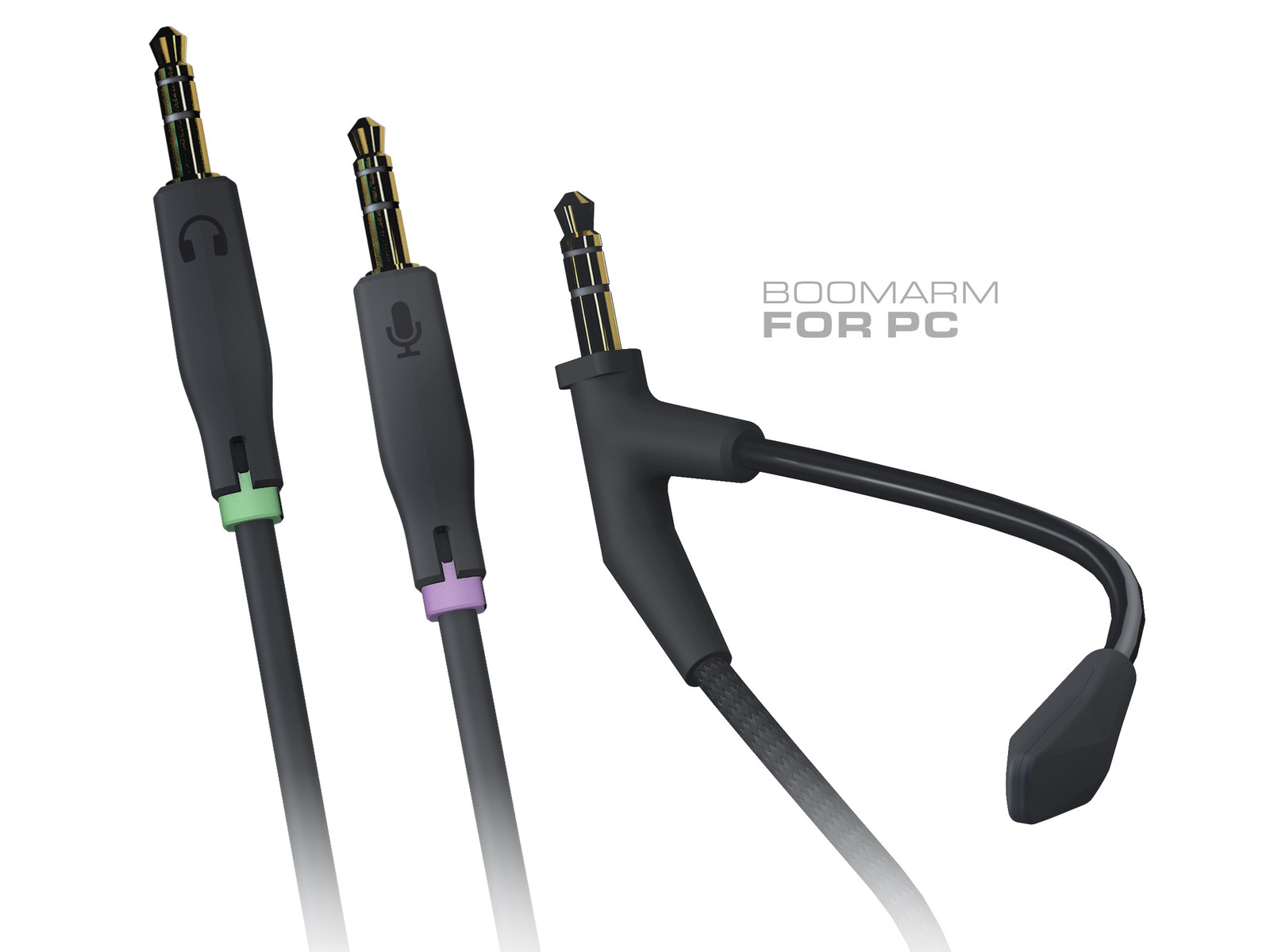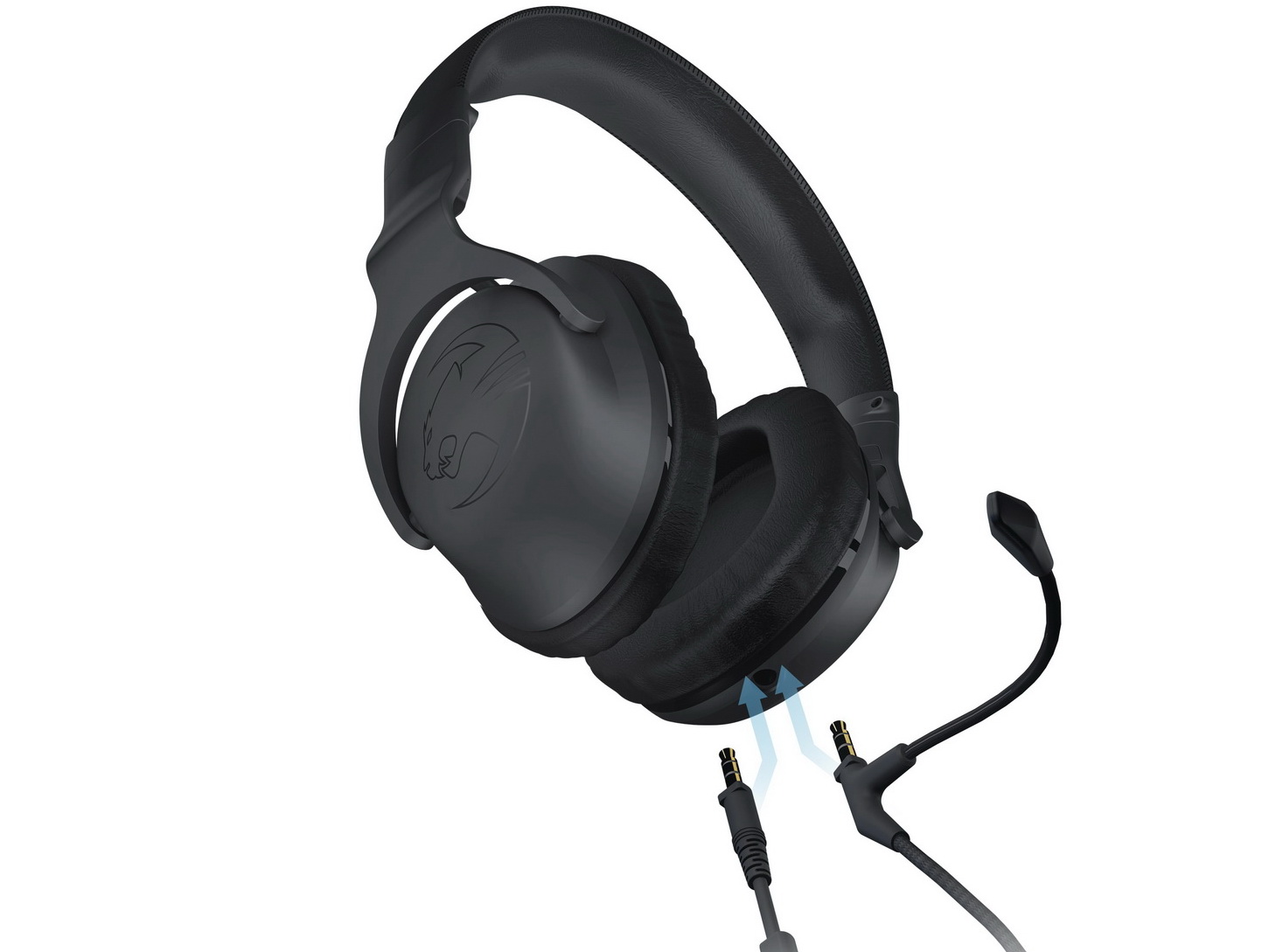 Ein Kabel mit Boom-Arm-Mikrofon dient dem Roccat Cross für den satten Sound und kommode Sprachqualität am Gaming-PC und der Konsole, das andere mit einem dezenten In-Line-Mikrofon für die Nutzung am Smartphone oder Tablet. Die Kabel lassen sich direkt an der Ohrmuschel umstecken. Damit entfällt lästiges Klettern unter den Tisch.
