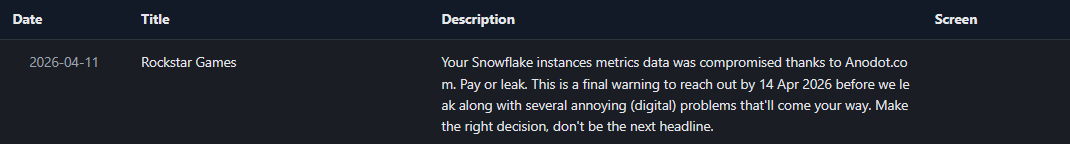 Die Gruppe behauptet, Zugriff auf Rockstars Snowflake-Umgebung erhalten zu haben (in der das Unternehmen unter anderem Analysedaten und Spieler-Telemetrie speichert und verwaltet), indem sie Authentifizierungs-Token von Anodot abfing. Mit dieser Methode können Angreifer die Standard-Multi-Faktor-Authentifizierung umgehen, indem sie legitime Service-Token nutzen, die über längere Zeiträume gültig bleiben.
