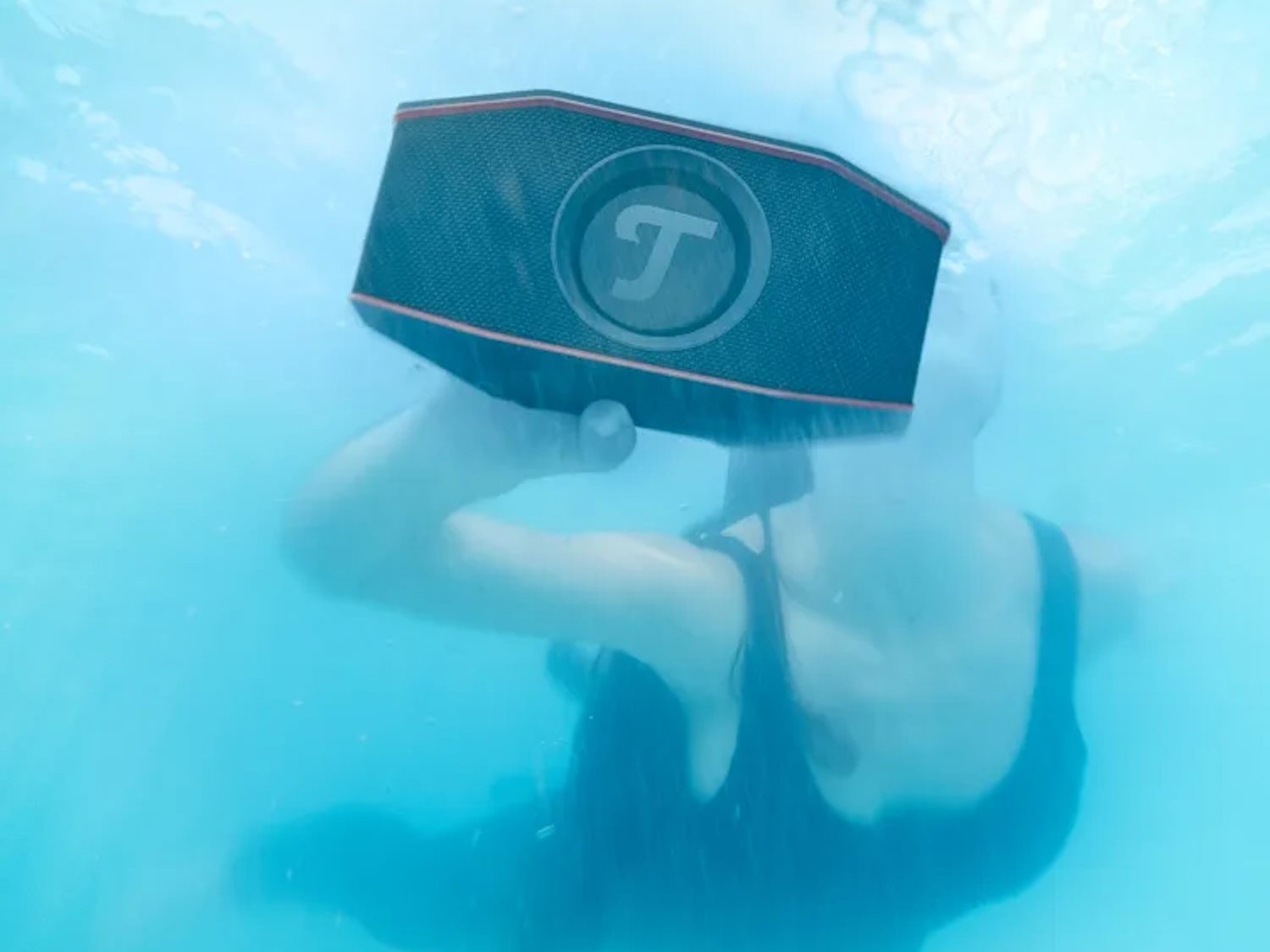 Es handelt sich um einen Bluetooth-Lautsprecher, welche Herstellerangaben zufolge gemäß IP67 gegen Staub und Wasser sogar beim Untertauchen geschützt sein sollen - Teufel bewirbt dabei sogar das Eintauchen einer Person mit dem Rockster Go 2 in der Hand. Der 21 x 11 x 6 Zentimeter große und mit 735 Gramm auch noch relativ leichte Lautsprecher bringt zwei Treiber mit einem Durchmesser von jeweils 50 Millimeter mit.