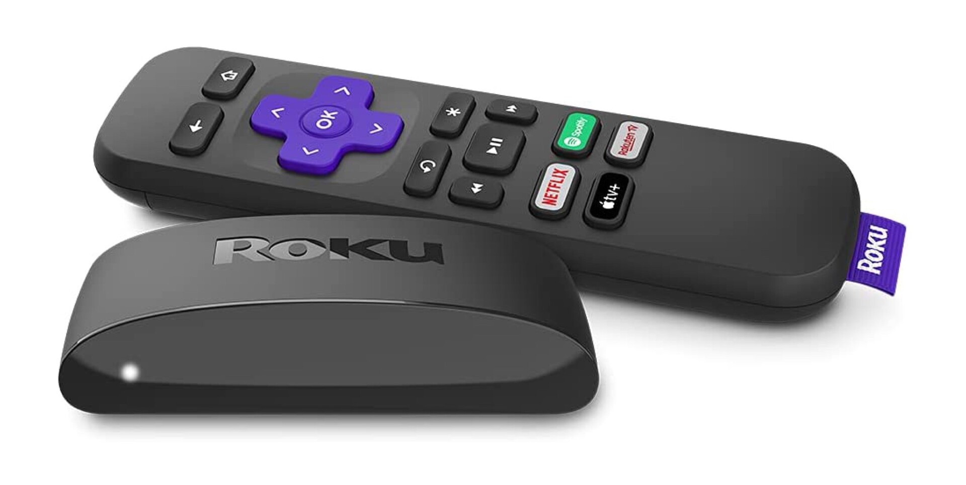 Ein passendes HDMI-Kabel befindet sich im Lieferumfang, genau wie eine einfache Infrarot-Fernbedienung, die zur Navigation durch das Betriebssystem verwendet werden kann. Abseits der herkömmlichen Navigations-Buttons sind auch dedizierte Knöpfe für den Zugriff auf Netflix, Spotify, Apple TV+ und Rakuten TV vorhanden. Da selbst der Amazon Fire TV Stick 4K im Black Friday Sale rund 25 Euro kostet, bietet Roku derzeit eine der günstigsten Set-Top-Boxen mit 4K-Support an.