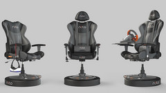 Der motorisierte VR-Stuhl Roto VR erlaubt durch seine rund 15 Kilogramm schwere VR-Base komplette 360-Grad-Drehungen, ohne dass die Kabel abgewürgt werden. Der VR-Sessel selbst wiegt dann nochmals 15 Kilo und kann mit zusätzlichem VR-Zubehör wie dem Double Rumble Roto VR Simulator Pack oder dem Roto Racing Pack gehörig getunt werden.