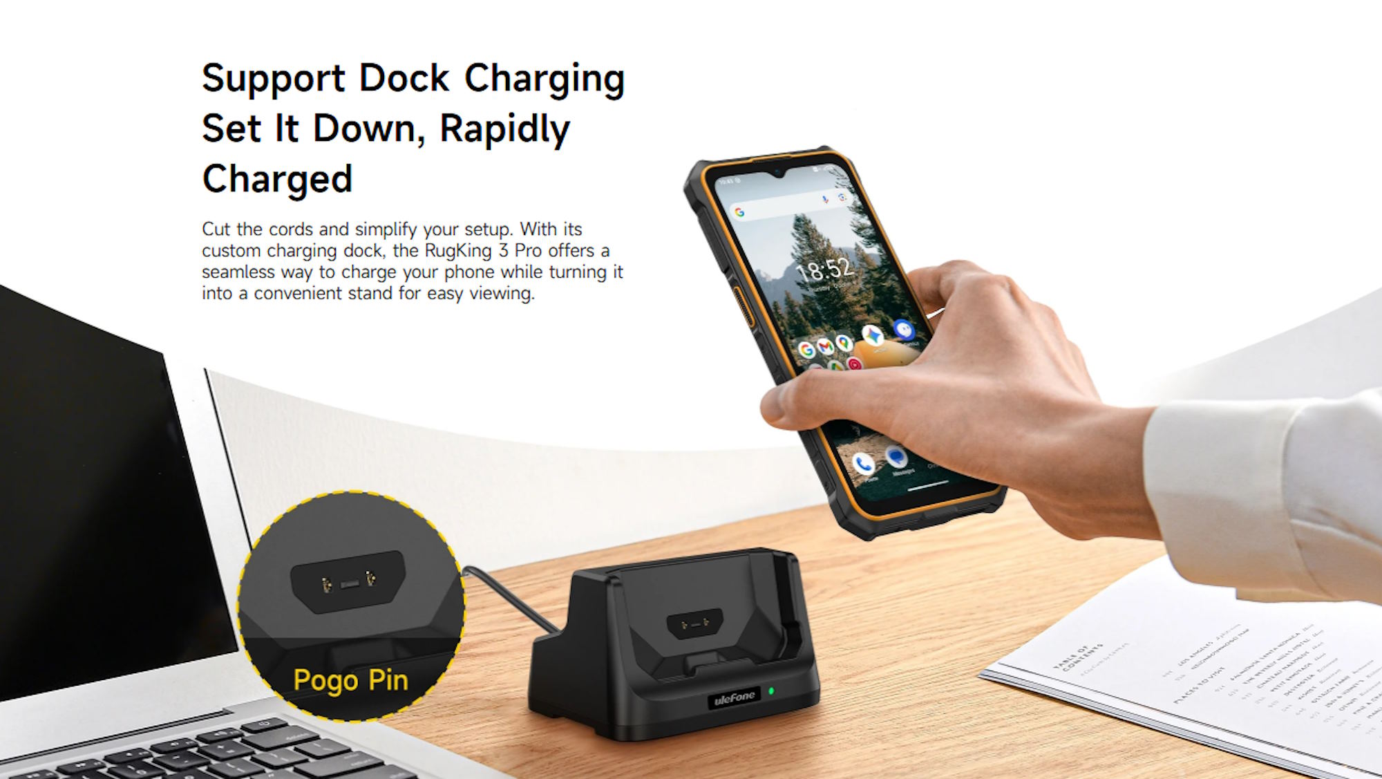 Ulefone ist ein auch hierzulande aktivier Hersteller, wobei dieser wohl am ehesten für seine Rugged-Smartphones (über Amazon) bekannt sein dürfte - und mit dem RugKing 3 Pro ein neues Modell im Sortiment hat. Dieses soll wie üblich den Anforderungen der IP69K, IP68 und MIL-STD-810H entsprechen und damit von Wasser, Staub oder auch Belastungen wie etwa bei einem Sturz nicht sofort drastisch beschädigt werden. Das Smartphone ist dabei 12,85 Millimeter dick und trägt nicht extrem groß auf - allerdings liegt die größere Bautiefe bei anderen Rugged-Smartphones nicht selten auch in einem extragroßen Akku begründet, beim RugKing 3 Pro bietet dieser nur eine Standard-Kapazität von 5.700 mAh und lässt sich auch nur mit 10 Watt aufladen. Die Aufladung ist allerdings auch über Pins an der Rückseite und mit einer entsprechenden Ladestation möglich.