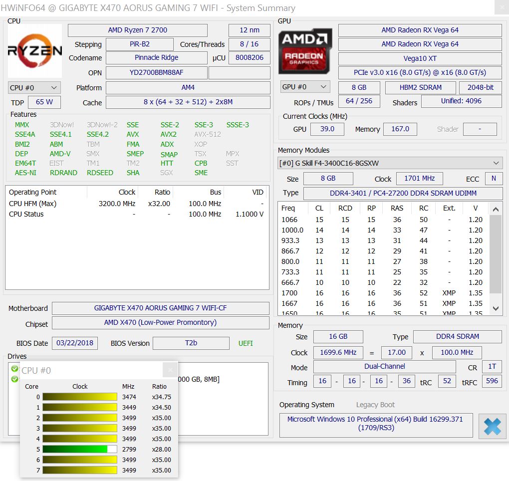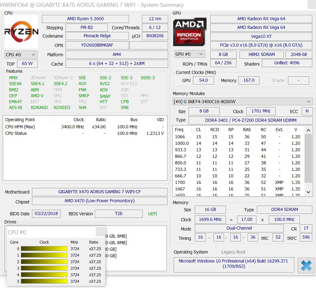 - Gigabyte X470 Aorus Gaming 7 Wifi (BIOS T2b, Default Settings, XMP 1 für DDR4-3400)