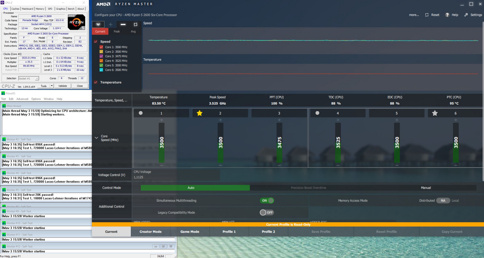 Für den Stresstest nutzen wir die mitgelieferten Boxed-Lüfter, welche schon ab Werk mit Wärmeleitpaste versehen sind. Schon bei der Cinebench-R15-Multi-Schleife haben wir feststellen können, dass beide Kühler in der Lage sind, die Prozessoren effektiv zu kühlen. Bei genauerer Betrachtung der Temperaturen wird aber schnell klar, dass der Wraith-Stealth schon deutlich seine Mühe hat, den Ryzen 5 2600 im Zaum zu halten. Beim Lasttest erhitzte sich der Ryzen 5 2600 auf gut 83 °C. Viel Spielraum bleibt dem Anwender hier nicht. Eine gute Gehäusebelüftung sollte somit Pflicht sein, damit kein unerwarteter Shutdown den Prozessor vor dem Hitzetod bewahren muss. Den Shutdown konnten wir problemlos bei einem Overclocking-Versuch herbeiführen.