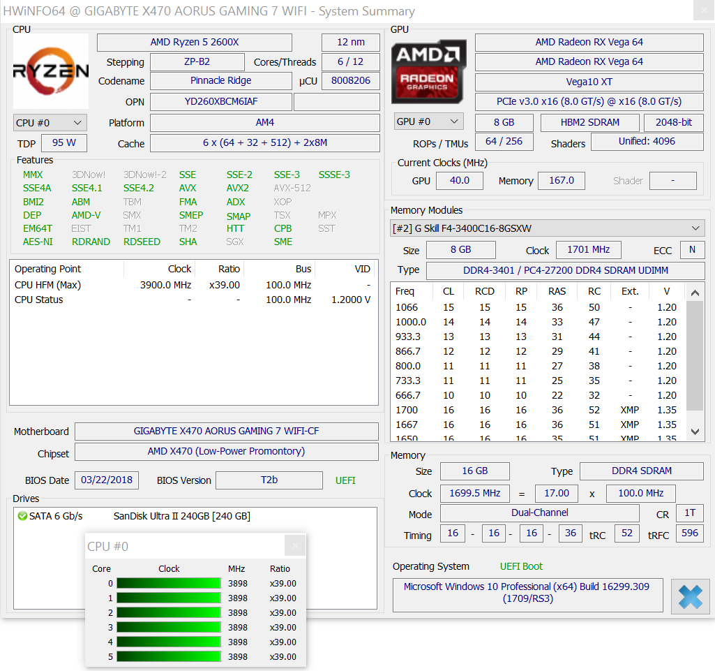 - Gigabyte X470 Aorus Gaming 7 Wifi (BIOS T2b, Default Settings, XMP 1 für DDR4-3400)
