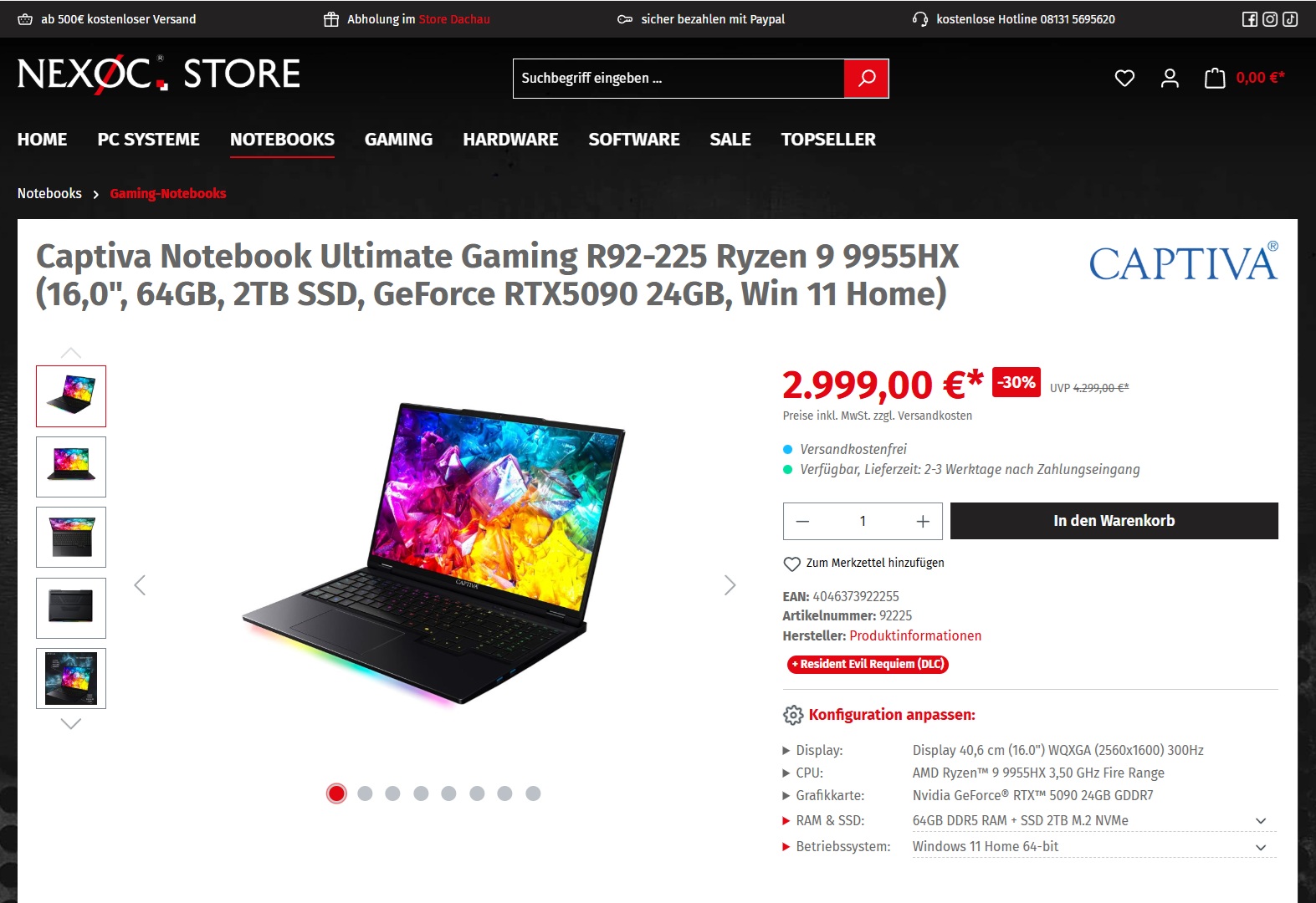 Die R92-Reihe der Firma Captiva zählt zur Oberklasse unter den Gaming-Notebook-Serien. Die Laptops der Reihe warten mit viel Rechenleistung und einer Menge Speicher auf. Aktuell führt Nexoc-Store.de mit dem Ultimate Gaming R92-225 ein Top-Modell der Reihe zu einem Angebotspreis von 2.999 Euro im Sortiment. Einem unserer Tests musste sich der Rechner noch nicht stellen.