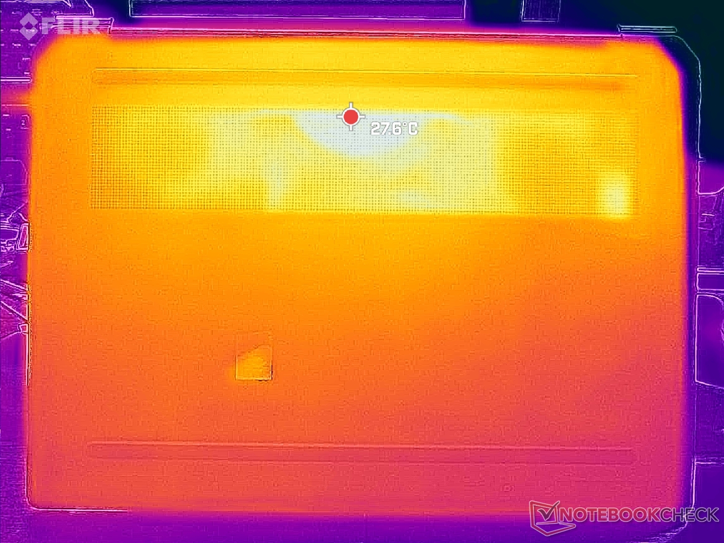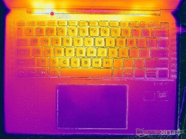 (±) 3: The average temperature for the upper side is 34.7 °C / 94 F, compared to the average of 30.8 °C / 87 F for the class Subnotebook.