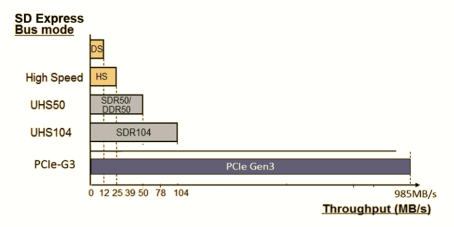 SD Express ist nun als SD 7.0 endlich offiziell. Durch den Wechsel vom UHS-Bus zu PCIe 3.0 und NVMe 1.3 sollen mit dem neuen Standard Geschwindigkeiten bis zu 985 MB/s erreicht werden. Im Vergleich zu UHS-II (312 MB/s) oder sogar dem noch immer nicht erhältlichen UHS-III (624 MB/s) sind also deutlich schnellere Karten zu erwarten.