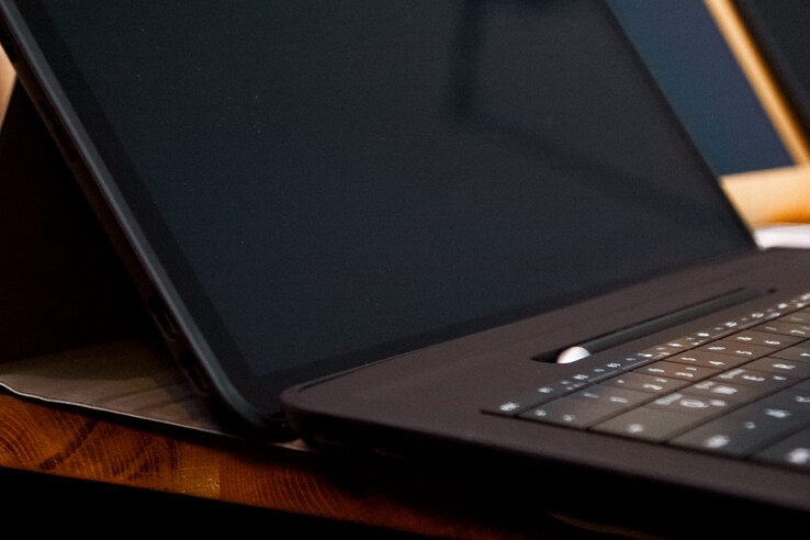Auf jeder seite des Notebooks gibt es zwei USB-C-Anschlüsse. Diese beherrschen Display-Port und Thunderbolt. Allerdings kann die Thunderbolt-Funktionalität auf der rechten seit aufgrund der längeren Kabelverbindung im Gerät eingeschränkt sein. Die Tastatureinheit funktioniert hier als Hub und erweitert die Anschlüsse so um weitere drei USB-C-Anschlüsse.
