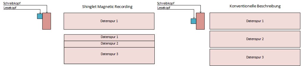 Die Schreibgeschwindigkeit ist eines der größten Nachteile von Magnetfestplatten: Während sequenzielle Daten im Optimalfall unproblematisch und schnell in einem Rutsch abgefahren werden können, muss bei wahlfreien Zugriffen der Lesekopf häufig bewegt werden, was die Datenrate von bis zu 200 Mbyte/s auf wenige MB/s absenken kann. Aufgrund von Sicherheitsmechanismen sind heutige Festplatten mechanisch weniger stark anfällig, diesbezüglich den SSDs aber ganz klar unterlegen. Vorteilhaft ist hingegen die hohe Speicherdichte und der günstige Preis je GByte.