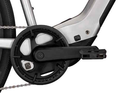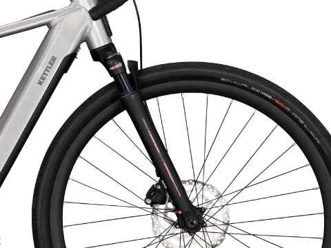 Im Gegensatz zu einem Rennrad oder einem Gravelbike ist aber eine Federgabel verbaut, wobei die SR Suntour GGVX32-E einen mit 40 Millimetern relativ kurzen Federweg bietet. Verbaut ist ein Bosch Performance Line SX-Mittelmotor (Smart System) mit einem Drehmoment von 55 Nm, welcher in Übereinstimmung mit der geltenden Rechtslage für zulassungsfreie E-Bikes bis zu einer Geschwindigkeit von 25 km/h unterstützend eingreift. Der in den Rahmen integrierte Akku bringt es auf 400 Wh, mit einem Range-Extender kann die Akkukapazität noch um 250 Watt gesteigert werden.