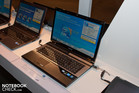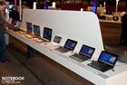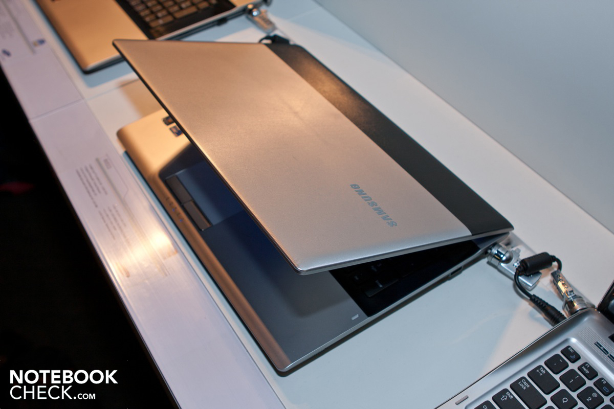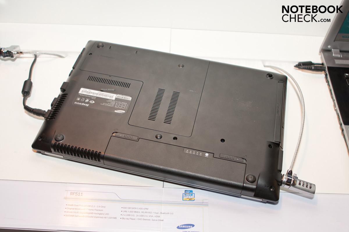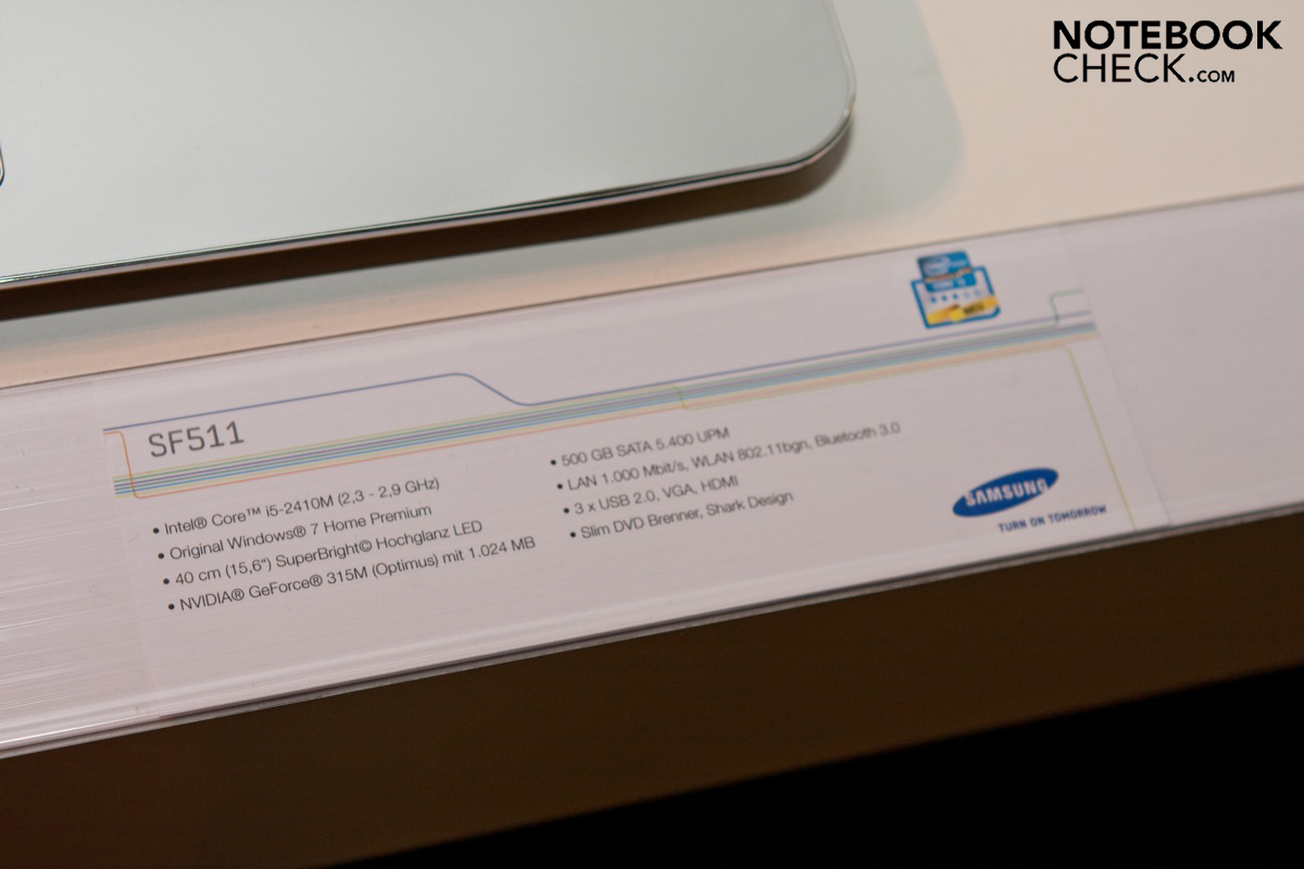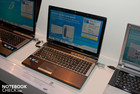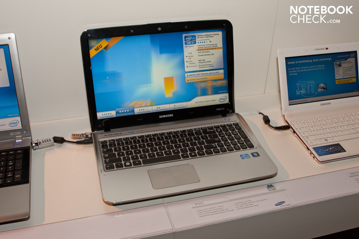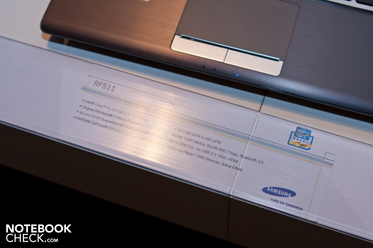 In den üblichen Bildschirmgrößen von 13,3- bis 17,3-Zoll zeigt Samsung diverse Consumer-Notebooks. Von über 10 Geräten arbeiten, abgesehen von der Serie 9 (Wir berichteten), aber nur drei Notebooks mit Intels neuen Sandy Bridge Prozessoren. Die RF-Serie erhält mit dem RF511 und RF710 ein leichtes Design-Update gepaart mit neuer Hardware. Die ausgestellte Konfiguration des 15,6-Zoll RF511 arbeitet mit Intel Core i5-2410M Prozessor, Intel GMA HD 3000 und Nvidia GeForce GT 540M Grafikeinheit. Wie bei allen anderen Modellen mit aktueller Hardware ist die automatische Grafikumschaltung Nvidia Optimus mit an Bord und weitere Konfigurationen sollen folgen.