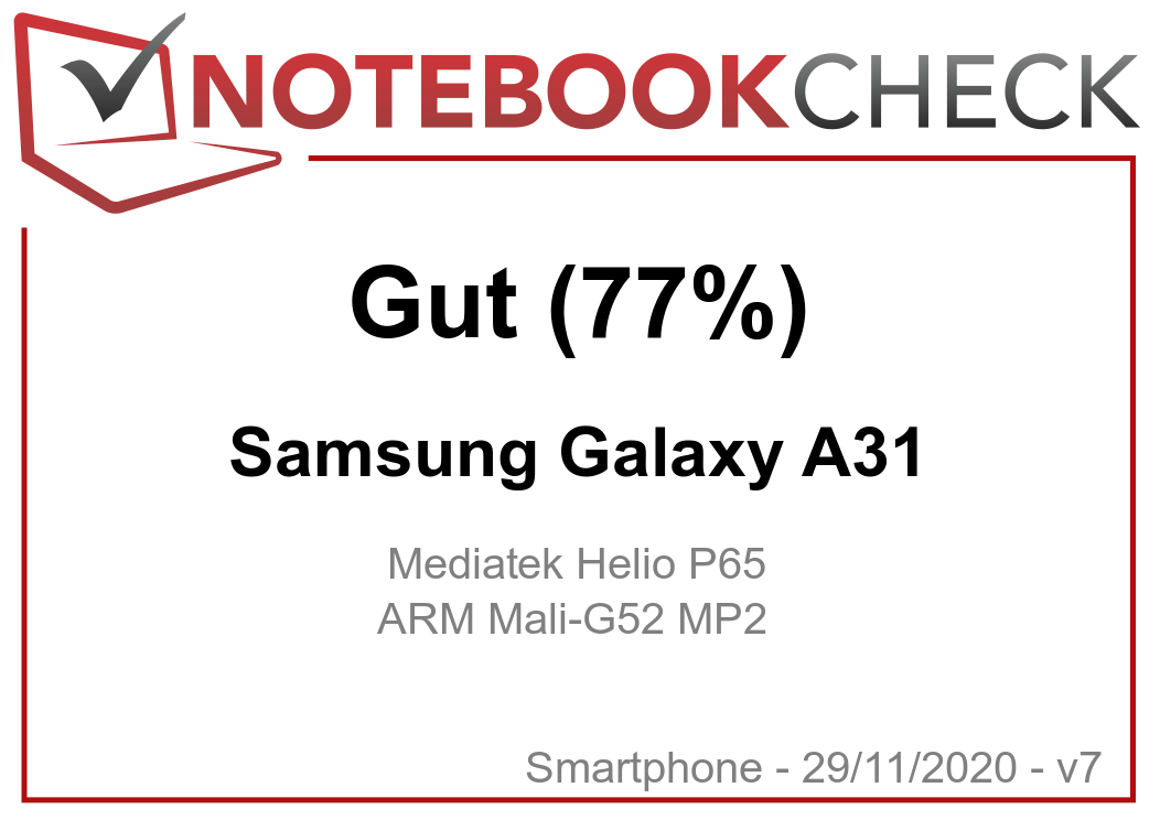 Hinzu kommen eine sehr gute Akkulaufzeit, das durchschnittlich helle Super-AMOLED-Display und der Umstand, dass sowohl eine Speicherkarte und zwei NanoSIM-Karten gleichzeitig eingesetzt werden können. Wird der Klassenprimus Xiaomi Poco X3 NFC außen vor gelassen, kann sich das Samsung Galaxy A31 durchaus gut gegen die Konkurrenz behaupten.