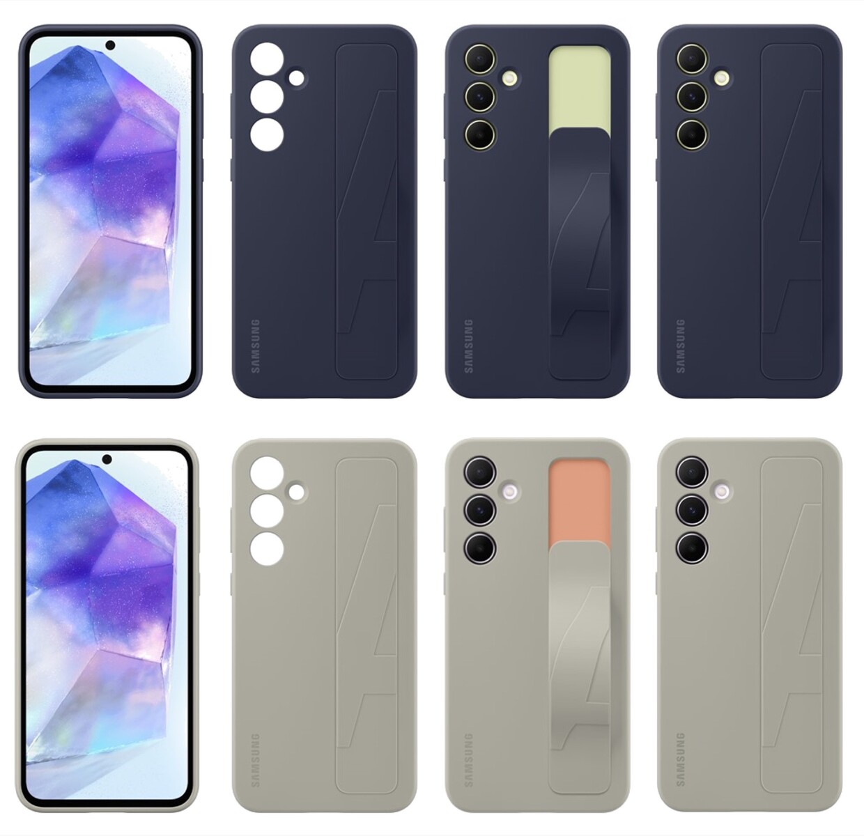 Appuals konnte nun die unten eingebetteten Bilder der angeblich offiziellen Samsung-Schutzhüllen für die neuen Mittelklasse-Smartphones veröffentlichen, angeführt vom brandneuen Standing Grip Case. Das Galaxy A55 ist das erste Modell der Galaxy A-Serie, das eine Hülle in diesem Stil erhält. Die Hülle besitzt eine Lasche auf der Rückseite, die ausgeklappt werden kann, um wahlweise sichereren Halt durch eine Handschlaufe zu gewährleisten, oder als Standfuß zu dienen.