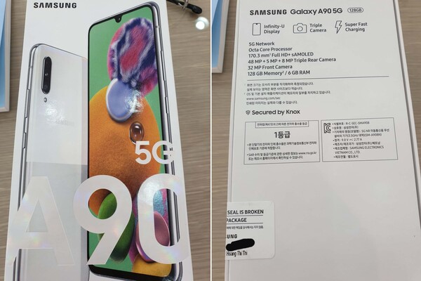 Das Galaxy A90 soll in zwei Varianten geplant sein, eines mit 5G-Unterstützung, das andere mit einem noch nicht näher beschriebenen Kamera-Feature namens "Tilt OIS". Hier sehen wir nun erstmals das 5G-Modell und zwar ein einem offiziellen Werbeplakat, welches angeblich direkt auf der koreanischen Samsung-Webseite entdeckt wurde. Glücklicherweise ist wenige Stunden später auch noch die Verpackung geleakt, hier sehen wir das neue Galaxy-Handy nämlich in deutlich höherer Auflösung und mit mehr Informationen.