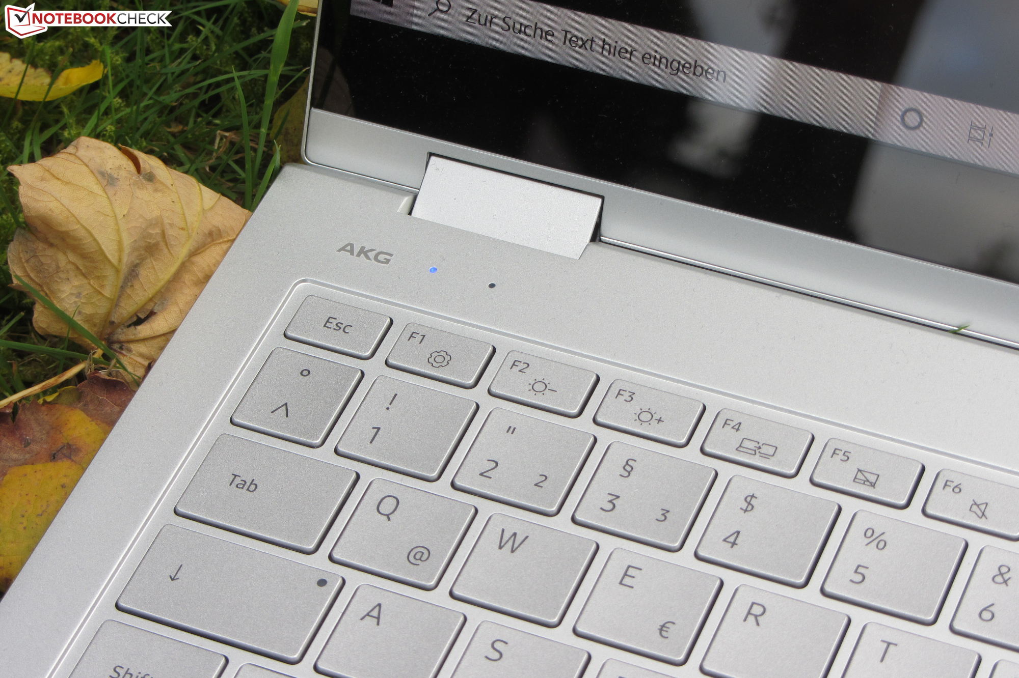 Die Tasten der beleuchteten Chiclet-Tastatur verfügen über einen kurzen Hub und einen deutlichen Druckpunkt. Der Tastenwiderstand gefällt. Während des Tippens gibt die Tastatur nicht nach. Die Pfeiltasten sind etwas klein geraten. Die Aufdrucke der silbernen Tasten sind schlecht zu erkennen, wenn die Tastenbeleuchtung bei normaler Umgebungshelligkeit eingeschaltet ist. Alles in allem liefert Samsung hier eine alltagstaugliche Tastatur.
