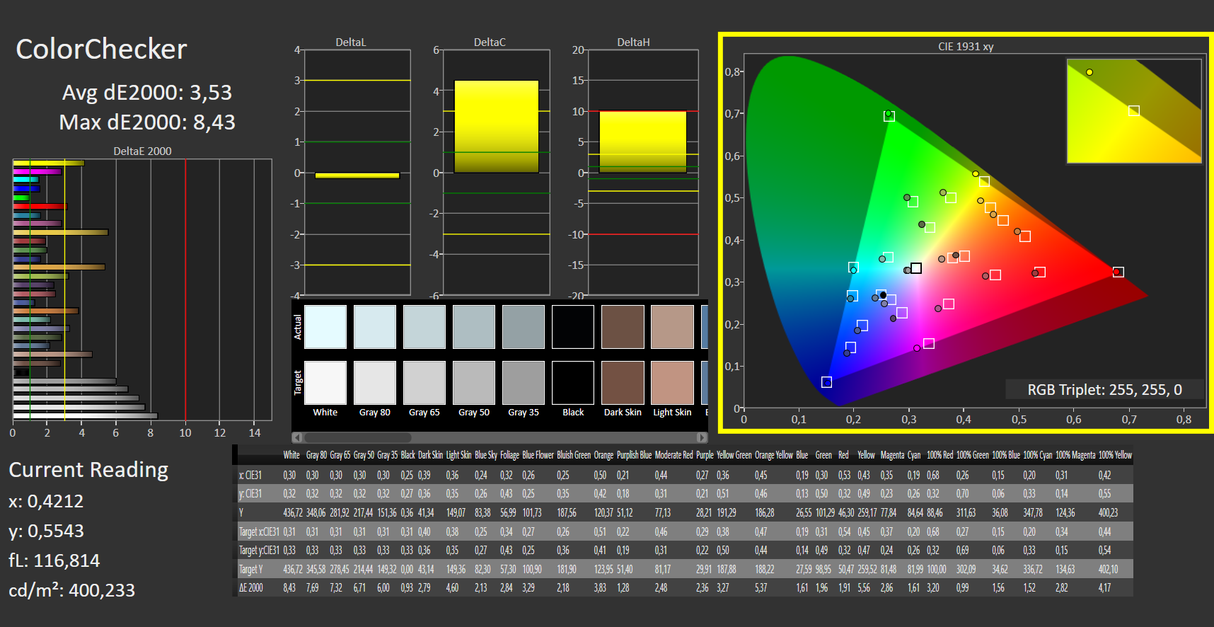 ΔE ColorChecker Calman: 3.53 | ∀{0.5-29.43 Ø4.78}
