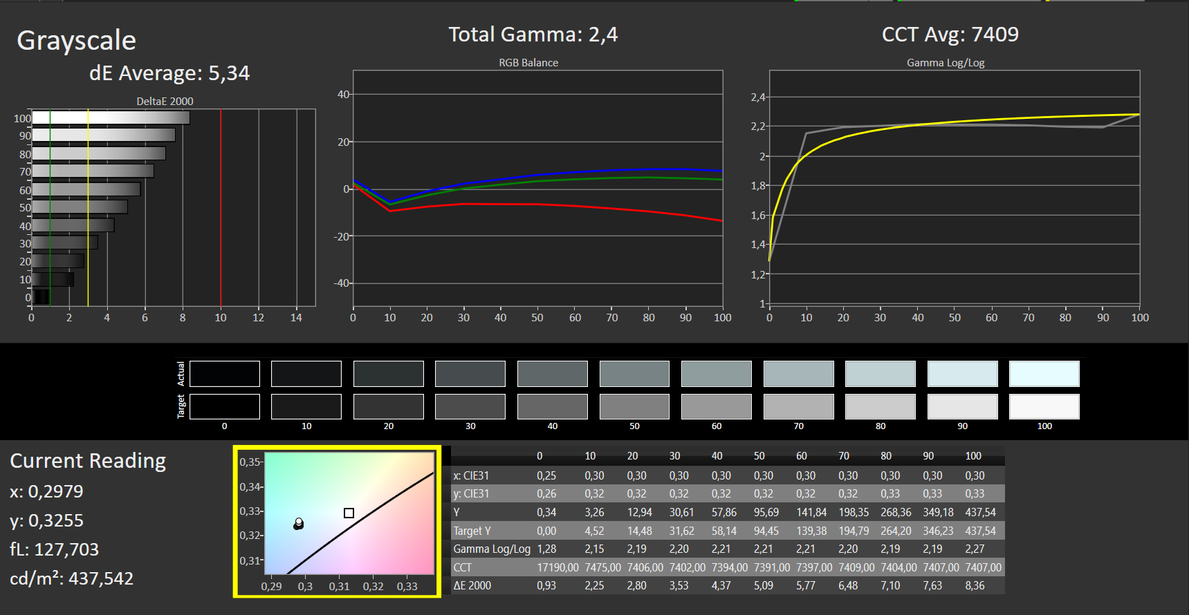 ΔE Greyscale Calman: 5.34 | ∀{0.09-98 Ø5}