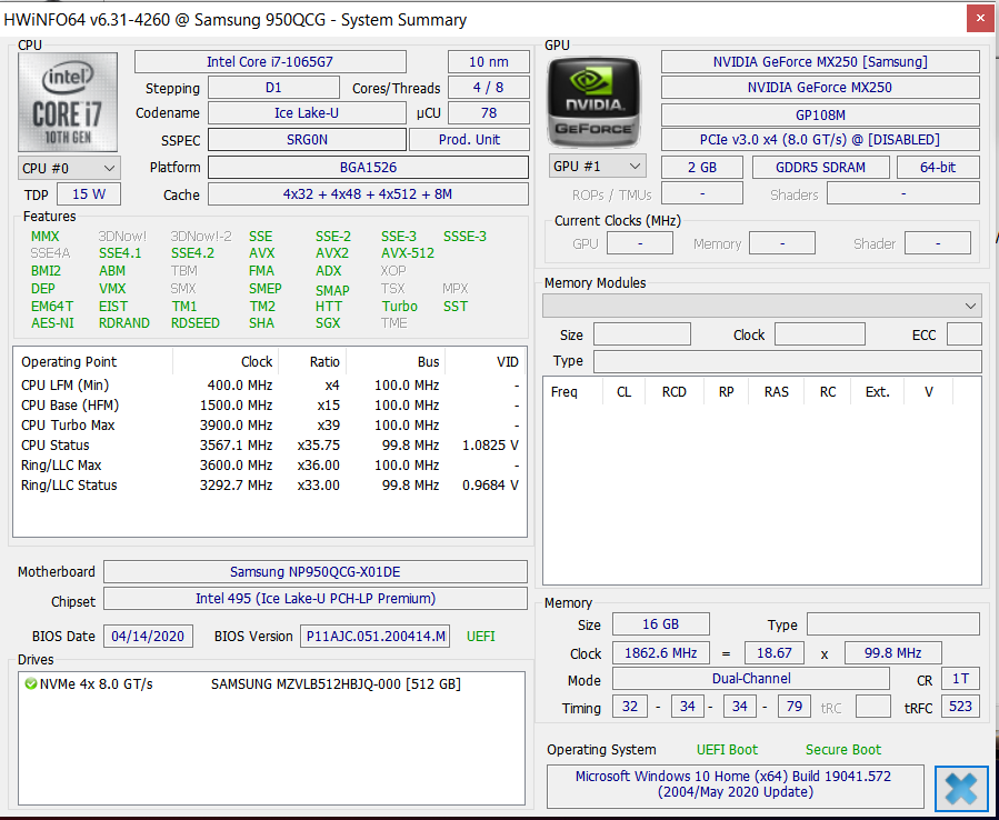 | 87.3 % v7 (old) | 10 / 2020 | Samsung Galaxy Book Flex 15-NP950 i7-1065G7, GeForce MX250 | 1.6 kg | 14.9 mm | 15.60" | 1920x1080 | |