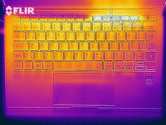 (+) Die Handballen und der Touchpad-Bereich sind mit gemessenen 31.5 °C kühler als die typische Hauttemperatur und fühlen sich dadurch kühl an.