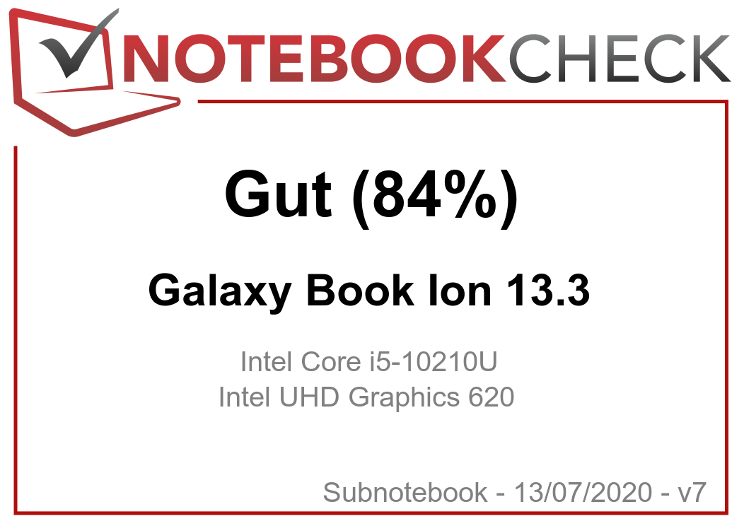 | 83.8 % v7 (old) | 07 / 2020 | Samsung Galaxy Book Ion 13.3 i5-10210U, UHD Graphics 620 | 970 g | 12.9 mm | 13.30" | 1920x1080 | |