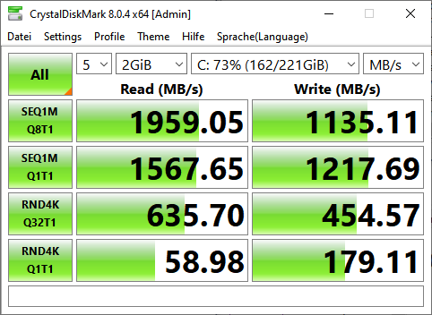 Der SD-Kartenleser scheint den Übertragungsgeschwindigkeiten entsprechend nur per USB 2.0 angeschlossen zu sein. Damit liefert dieser nur wenig zeitgemäße Übertragungsraten. Zumindest lassen sich die microSD-Karten komplett im Gehäuse des Convertibles versenken.