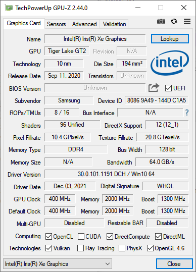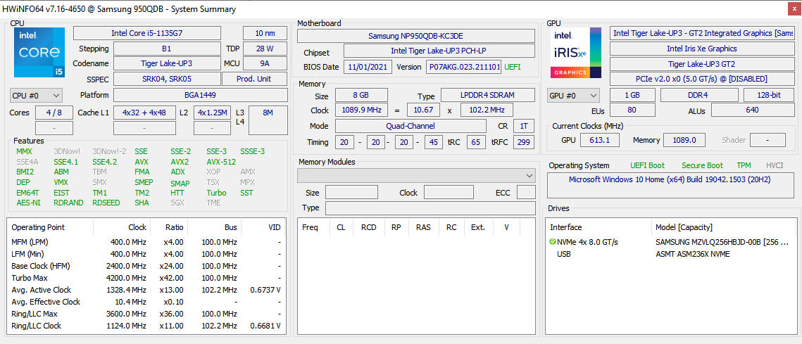| Samsung Galaxy Book Pro 360 15 NP950QDB-KC3DE Iris Xe G7 80EUs, i5-1135G7, Samsung PM991 MZVLQ256HAJD | HP Pavilion x360 15-er0155ng Iris Xe G7 80EUs, i5-1135G7, WDC PC SN530 SDBPNPZ-512G | HP Envy x360 15-eu0097nr Vega 8, R7 5700U, WDC PC SN530 SDBPNPZ-512G | Asus Chromebook Flip CX5 CX5500FEA Iris Xe G7 96EUs, i7-1165G7 | Samsung Galaxy Book Pro 360 13 Iris Xe G7 80EUs, i5-1135G7, Samsung PM991 MZVLQ256HAJD | Dell Inspiron 14 5410-D3D7T Iris Xe G7 96EUs, i7-1165G7, Toshiba KBG40ZNS512G NVMe | Samsung Galaxy Book Pro 15 NP950XDB-KC5US Iris Xe G7 96EUs, i7-1165G7, Samsung PM991a MZ9LQ1T0HBLB-00BKN | |