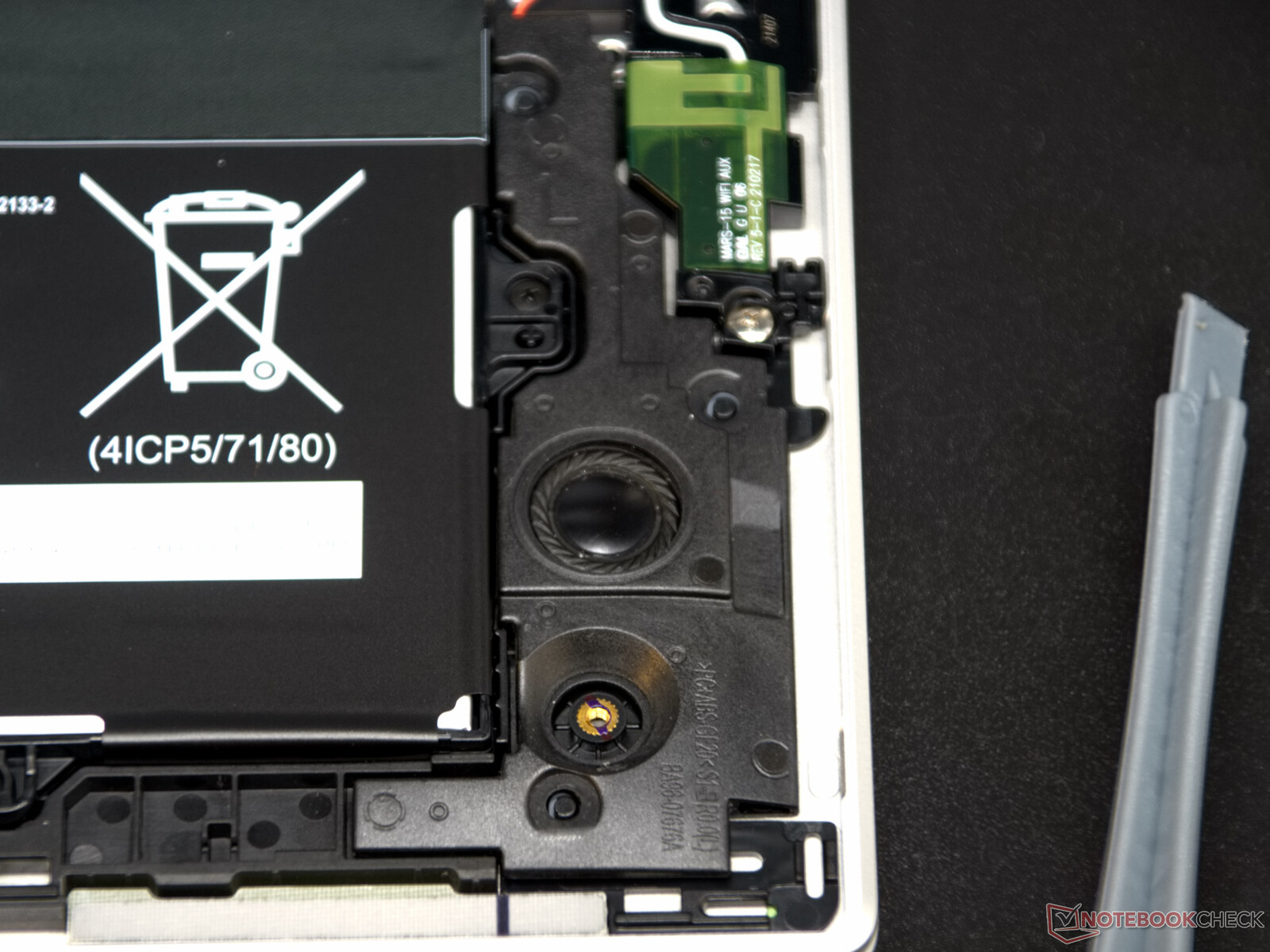 Trotz des geringen Platzangebotes schafft es Samsung einen vernünftigen Klang aus den Laptop-Lautsprechern zu bekommen. In den Tiefen fehlt es zwar deutlich an Volumen, Mitten und Höhen werden klar wiedergegeben. Für einen so flachen Laptop sind die Lautsprecher angemessen. Da Samsung einen 3,5 mm Klinkenanschluss verbaut hat, kann man externe Kopfhörer und Lautsprecher kabelgebunden oder über Bluetooth betreiben.