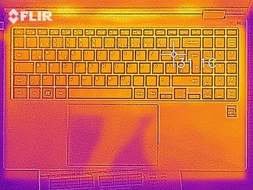(+) Die Handballen und der Touchpad-Bereich sind mit gemessenen 30.6 °C kühler als die typische Hauttemperatur und fühlen sich dadurch kühl an.