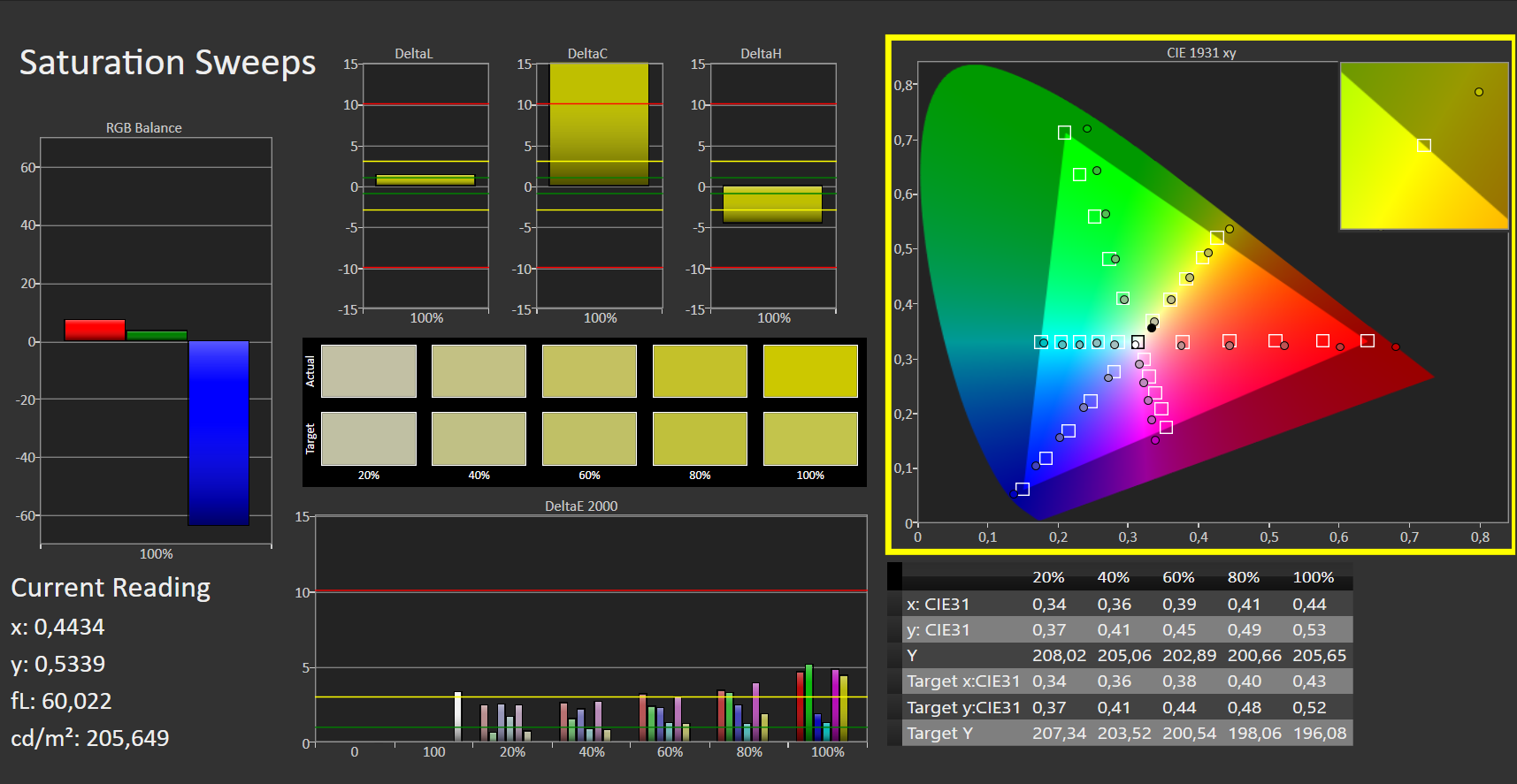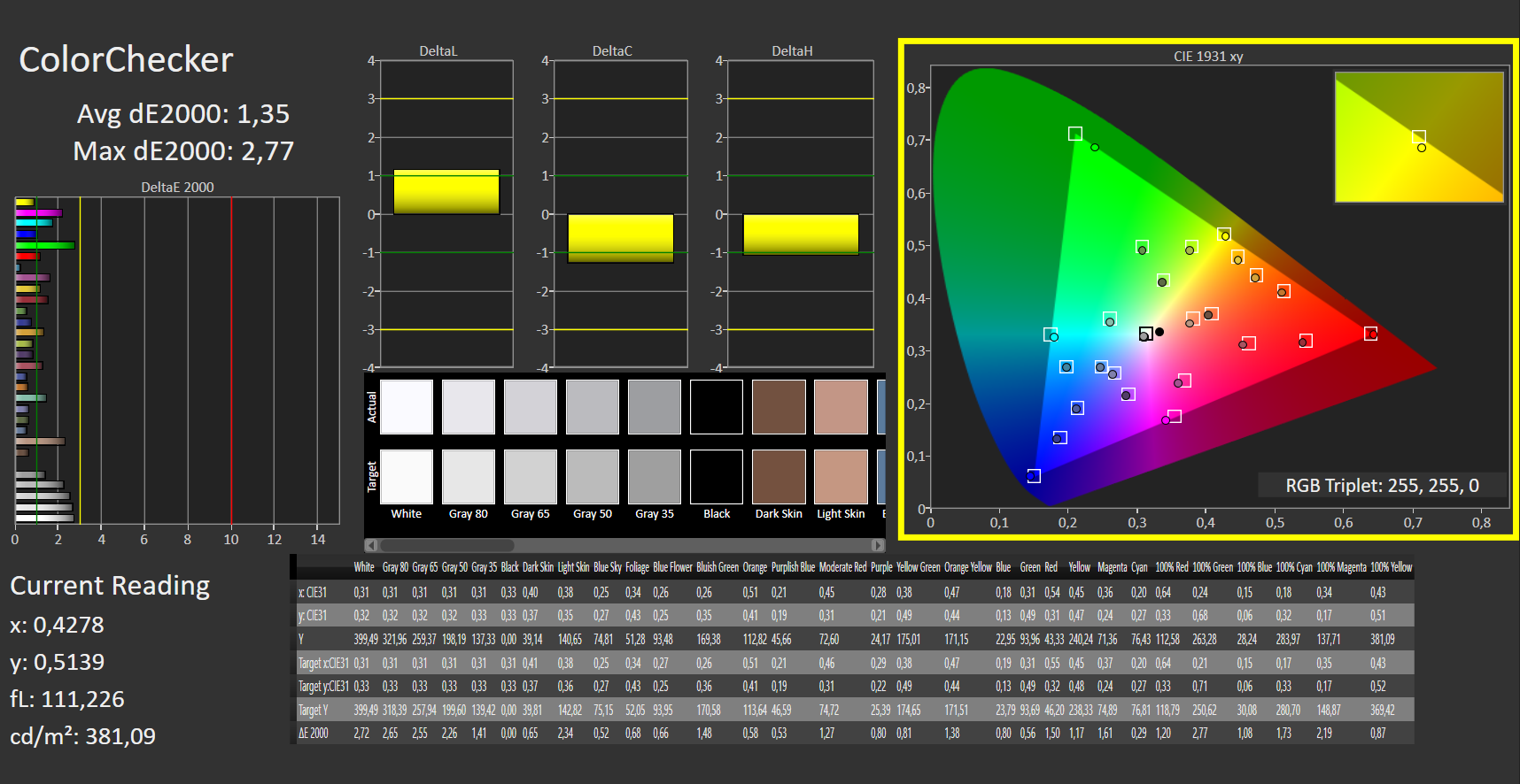 ΔE ColorChecker Calman: 1.35 | ∀{0.5-29.43 Ø4.78}