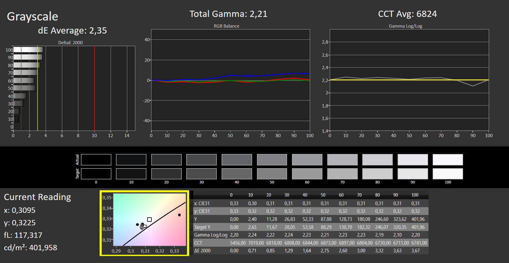 ΔE Greyscale Calman: 2.35 | ∀{0.09-98 Ø5}