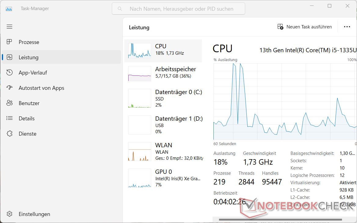 Überzeugen kann hingegen der verbaute Mittelklasse-Prozessor aus der Raptor-Lake-U-Generation. Der Intel Core i5-1335U zeigt sein Können und legt eine solide Performance hin. Auch die iGPU performt über dem Schnitt.