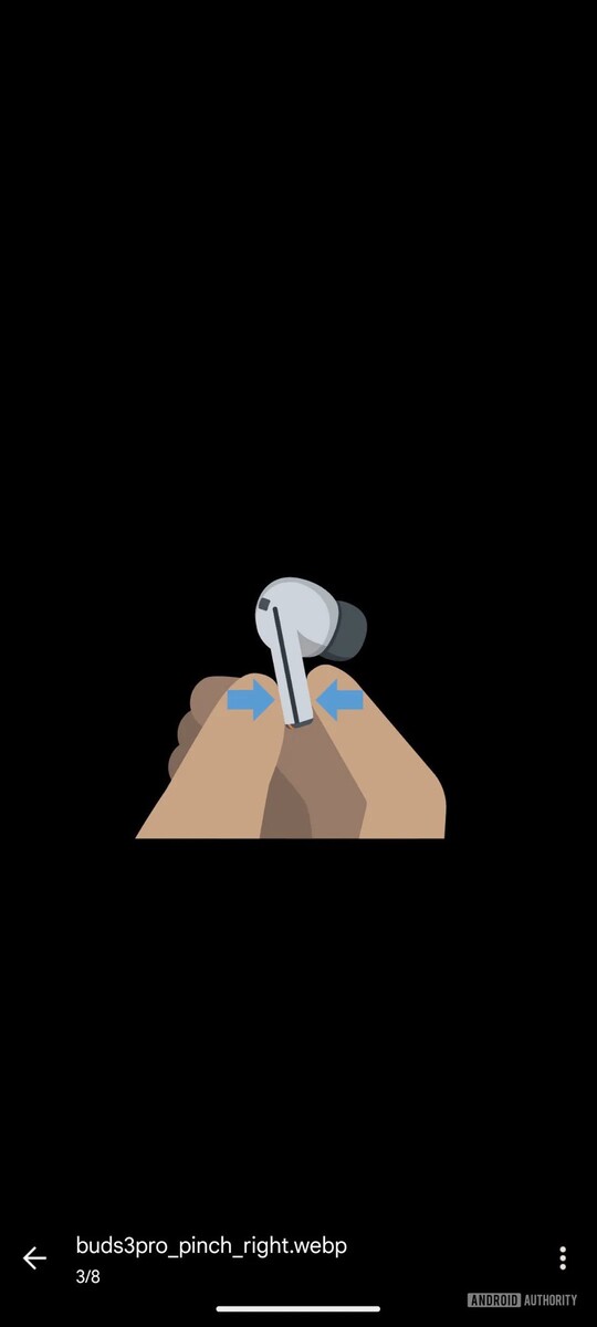 Laut dieser Grafiken übernimmt Samsung auch die "Squeeze"-Geste von den AirPods Pro, statt also auf eine berührungsempfindliche Oberfläche an der Außenseite setzen die Ohrhörer auf einen druckempfindlichen "Stiel", um die Musikwiedergabe zu steuern – das erlaubt es, Eingaben durch haptisches Feedback zu bestätigen, und vermeidet versehentliche Eingaben, wenn die Ohrhörer nur im Ohr justiert werden. Bei den AirPods Pro kann die Musikwiedergabe durch einmal Drücken pausiert oder fortgesetzt werden, zweimal Drücken springt zum nächsten Song, dreimal Drücken zum vorherigen.