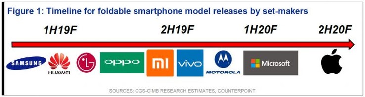 Mit knapp 640 US-Dollar an Kosten und bei einer prognostizierter Gewinnspanne von anfangs 65 Prozent, welches in etwa der des iPhones XS Max von Apple entspricht, dürfte das faltbare Galaxy F wohl um etwa 1.800 US-Dollar auf den Markt kommen, was früheren Hinweisen entspricht. Die Analysten erwarten für 2019 etwa 3,5 Millionen verkaufter Falt-Handys insgesamt, neben Samsung sollen 2019 auch noch Huawei, LG, Oppo, Xiaomi, Vivo und Motorola erste Produkte auf den Markt bringen. 2020 stoßen dann Microsoft und Apple dazu, bis 2022 erwarten die Marktbeobachter 24 Millionen verkaufter Falt-Phones, was einem Anstieg des Marktanteils von 1,3 Prozent in 2019 auf 9,2 Prozent in 2022 entspricht. 2022 dürfte ein flexibles Tablet, welches sich zu einem Smartphone zusammenklappen lässt mit etwa 1.300 US-Dollar Verkaufspreis aber immer noch eher ein Luxusobjekt sein.