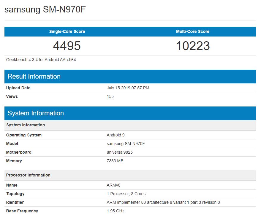 Schon vor Monaten gab es erste Gerüchte zu einem Exynos 9825-SoC, de facto eine leicht schnellere Variante des im Galaxy S10 für europäische Modelle verbauten Exynos 9820. Nun tauchen konkrete Hinweise in Form eines Geekbench-Leaks auf, in dem ein Samsung Galaxy Note 10 mit der Modellnummer SM-N970F mit 8 GB RAM und dem upgedateten Samsung-SoC auf Performance abgeklopft wird.