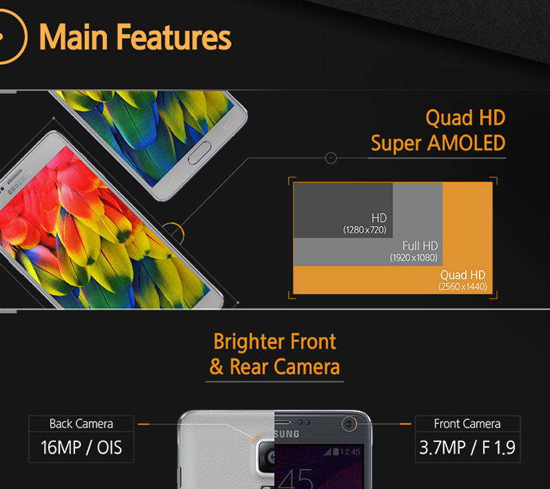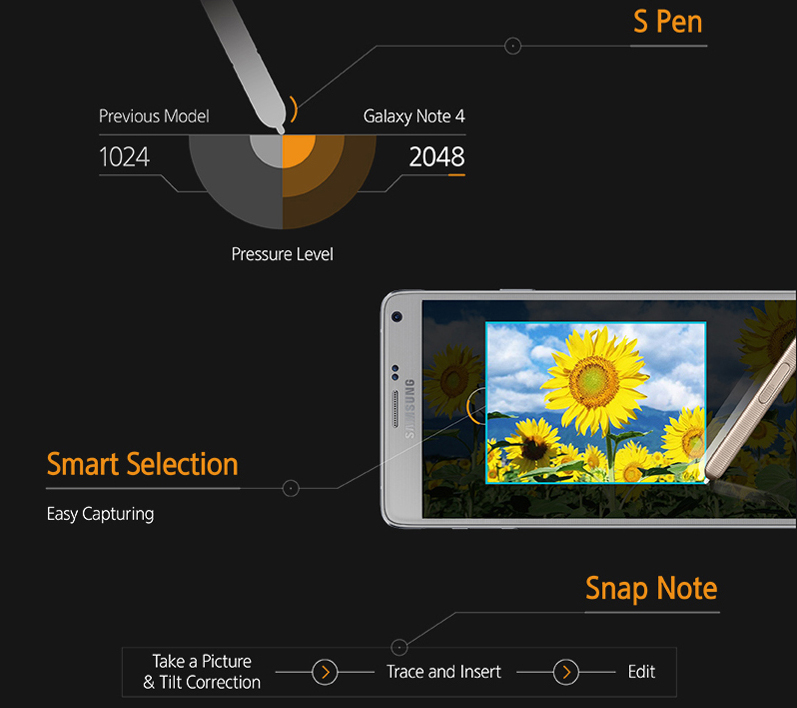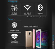 Was alles im neuen Galaxy Note 4 steckt, hat Samsung übersichtlich in einer interessanten Infografik zusammengefasst. Samsung ist bei der Zusammenstellung der technischen Spezifikationen ein kleiner Fehler unterlaufen. In der Infografik wird die Länge des Galaxy Note 4 mit 151,3 Millimetern angegeben. Das Note 4 misst allerdings 153,5 Millimeter. Die Längenangabe stammt vom ebenfalls zur IFA 2014 vorgestellten Samsung Galaxy Note Edge.