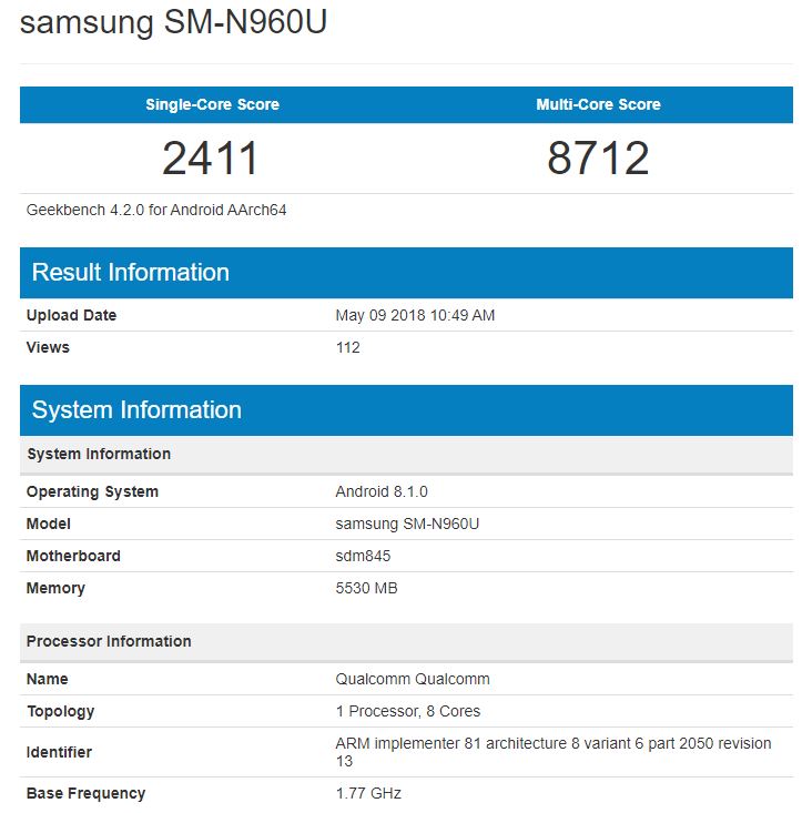 Nachdem kürzlich ein gefakter Galaxy Note 9-Eintrag auf Geekbench für künstlich aufgebauschtes Interesse gesorgt hat, zeigt sich der aktuelle Lauf, der auch tatsächlich in der Datenbank des Benchmarkprogramms zu finden ist, wieder im normalen Bereich. Vermutlich handelt es sich bei dem hier getesteten Modell mit der Nummer SM-N960U um das US-Modell mit Snapdragon 845 und somit entsprechen die Werte auch in etwa denen, die man von dieser Mobilplattform erwarten darf.