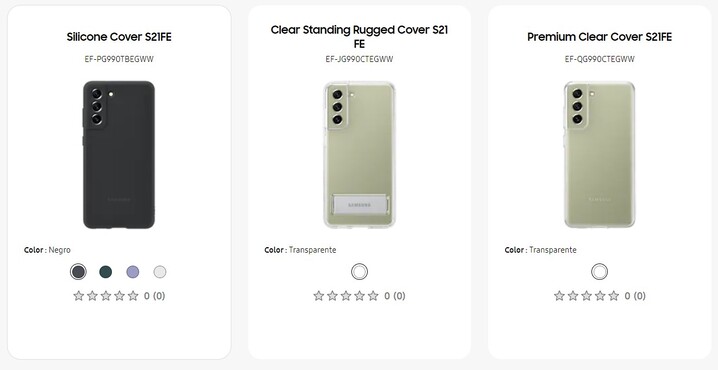 Bei der Angabe 12 GB RAM dürfte es sich um ein Soft-RAM-Feature handeln, wie einige Leaker betonen. Laut einer nicht bestätigen Info von Fronttron auf Basis eines Händlers wird es vom Galaxy S21 FE Versionen mit 6/128 GB und 8/256 GB geben, zu Preisen ab 652 US-Dollar. Ein weiterer Leak liefert uns nun auch Bilder offizieller Samsung-Cases (siehe unten). Die kolumbianischen Samsung-Seiten haben bereits Produktseiten zu drei Galaxy S21 FE-Schutzhüllen online, zu finden hier (Silicone Cover, Clear Standing Rugged Cover, Premium Clear Cover)