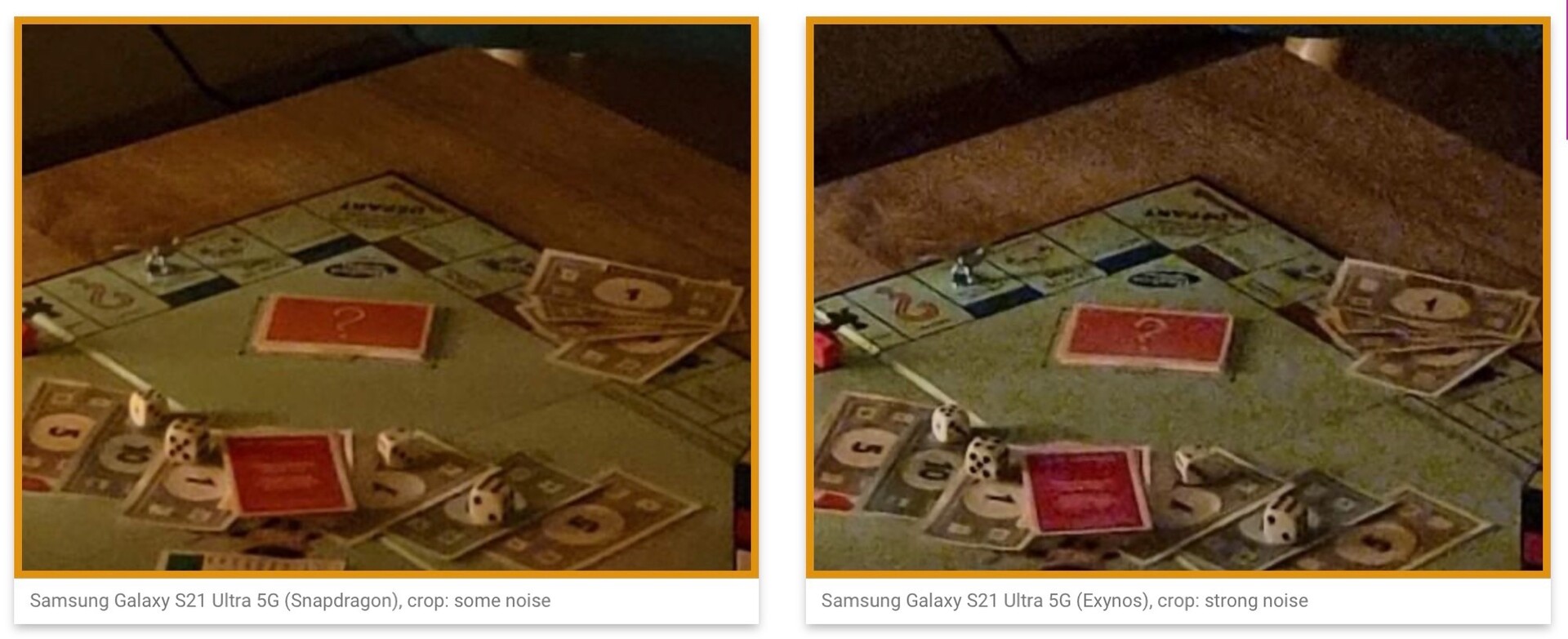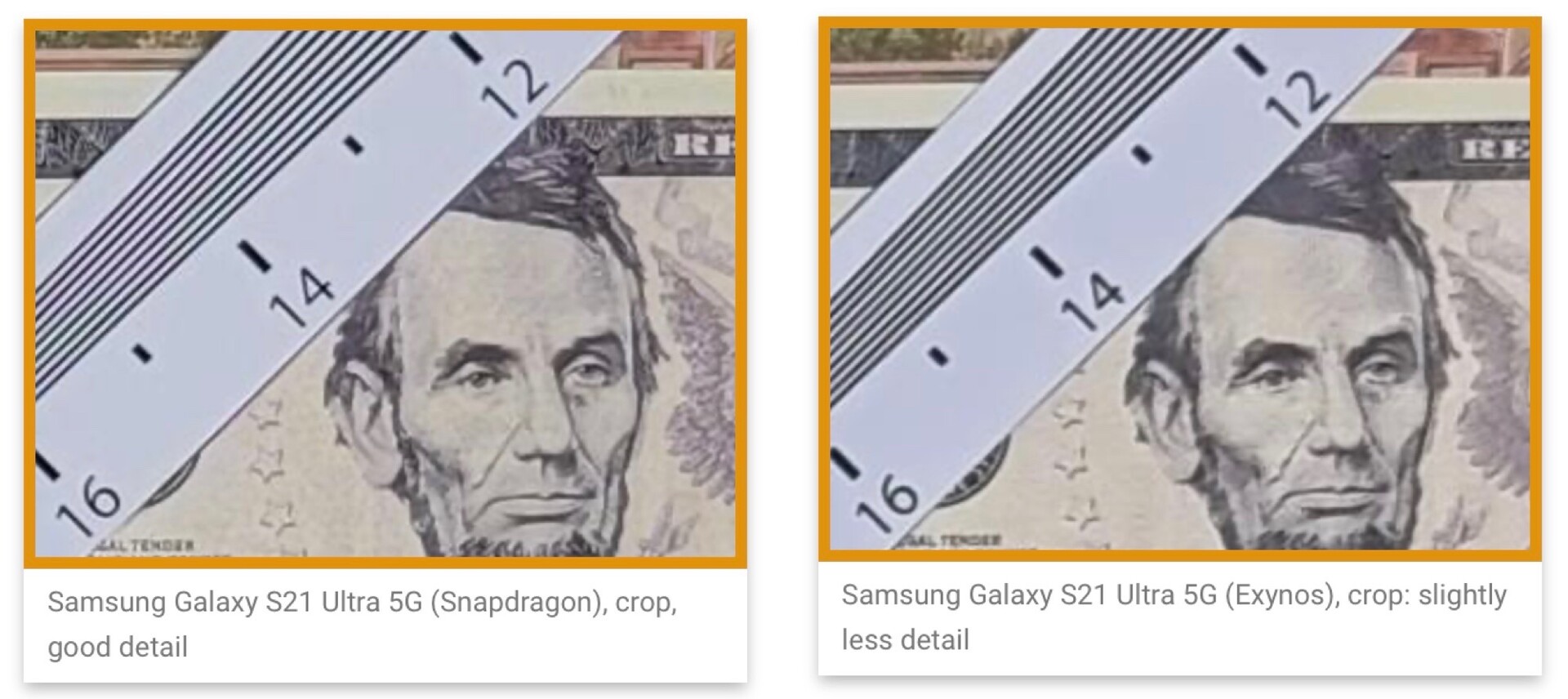Wie die unten eingebetteten Vergleichsbilder von DxOMark zeigen kann die Kamera des Galaxy S21 Ultra mit Snapdragon 888 nicht nur mehr Details abbilden, bei wenig Licht gibt sie zudem sichtbar weniger Bildrauschen wieder. Immerhin gibts beim Autofokus ein paar Bonuspunkte für den Exynos, dieser arbeitet nämlich ein wenig schneller und präziser.