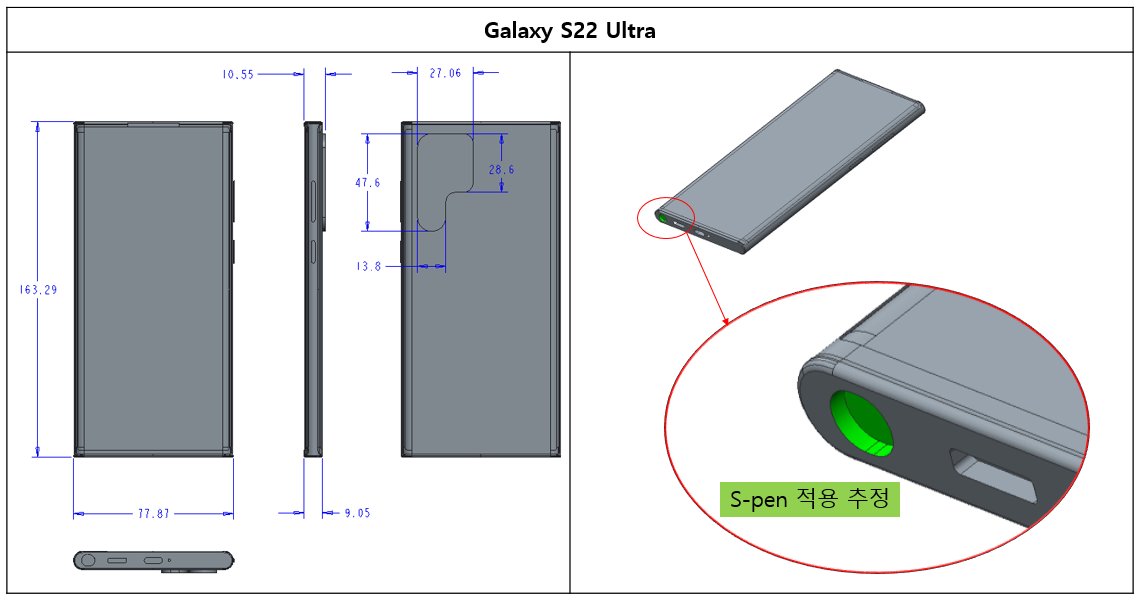 Letzteres sieht man auch sehr gut in den nun auch in Reinform geleakten CAD-Modellen, die der Leaker Tron via Twitter geteilt hat. Darauf aufbauend wurden ja bereits in der Vergangenheit einige Renderbilder und Videos erstellt, nun kann man sich aber auch selbst ein Bild davon machen, wie die Galaxy S22-Serie am Reißbrett aussieht, auch die Abmessungen und der bereits früher mal kolportierte Name Galaxy S22 Pro statt Galaxy S22+ sind hier vermerkt. Speziell hervorgehoben wurde der S-Pen-Einschub im Galaxy S22-Ultra, das hier auch sein deutlich kantigeres Chassis im Stil der Note-Reihe zum Besten gibt.