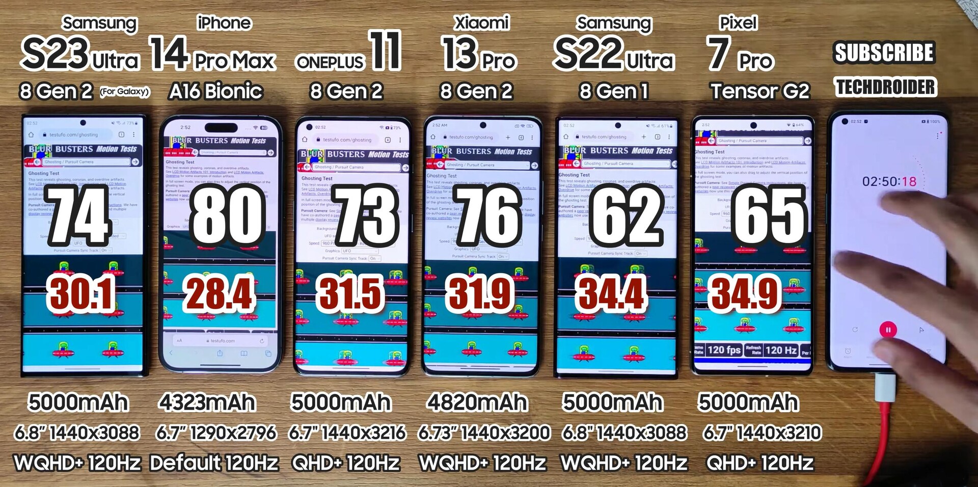 Der indische Youtuber Techdroider hat einen seiner üblichen Akkulaufzeit-Tests veröffentlicht, in dem das Galaxy S23 Ultra (hier bei Amazon erhältlich) nicht nur gegen das Apple iPhone 14 Pro Max antritt sondern auch gegen das Samsung-Flaggschiff aus dem Vorjahr sowie einige andere, aktuelle Android-Flaggschiffe, konkret das Google Pixel 7 Pro, das Xiaomi 13 Pro und das OnePlus 11.