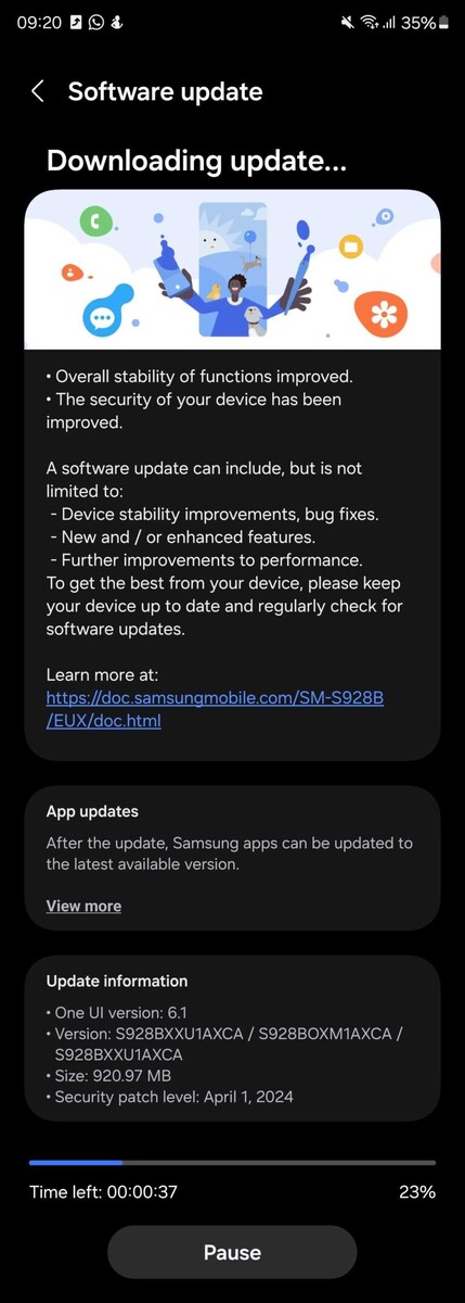 Ungewöhnlich früh und vor allem auch parallel in Südkorea und Europa hat Samsung damit begonnen, sein Firmware-Update für den Monat April auszurollen, das mit der Versionsnummer S92xBXXU1AXCA fast 1 GB schwer ist, konkret 920,97 Megabyte. Mit an Bord ist bereits der Android-Security-Patch vom 1. April 2024 und das obwohl der Monat März noch ein paar Tage Restlaufzeit hat.